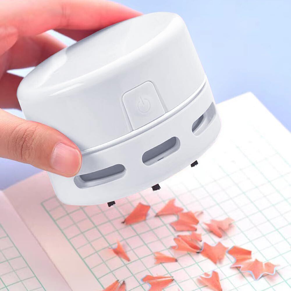 卓上クリーナー USB充電式 卓上そうじ機 卓上掃除機 強力吸引 ミニクリーナー 消しゴムかす ゴミやホコリ 食べこぼし 勉強机 リビング学習 ミニ 掃除機 おしゃれ コンパクト デスクトップ コードレス 事務用品 文房具 ステーショナリー(ホワイト)
