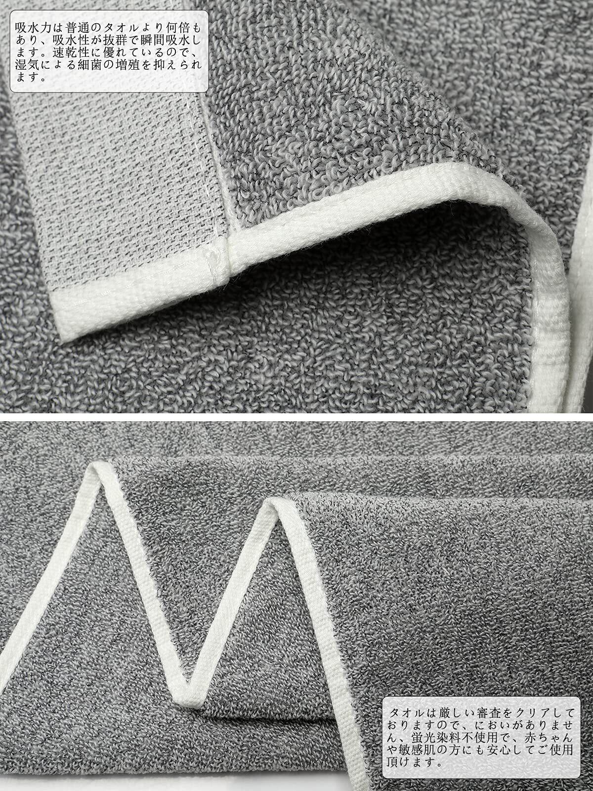 【吸水速乾】素材の表面は数えられない隙間があり、その隙間に大量の水分を素早い吸水できます。吸水力は普通のタオルより何倍もあり、吸水性が抜群です。乾き早いの特徴は注目されるポイントです、湿気による細菌の増殖を抑えられます。洗濯物を乾きにくい時期にも快適で使えます。