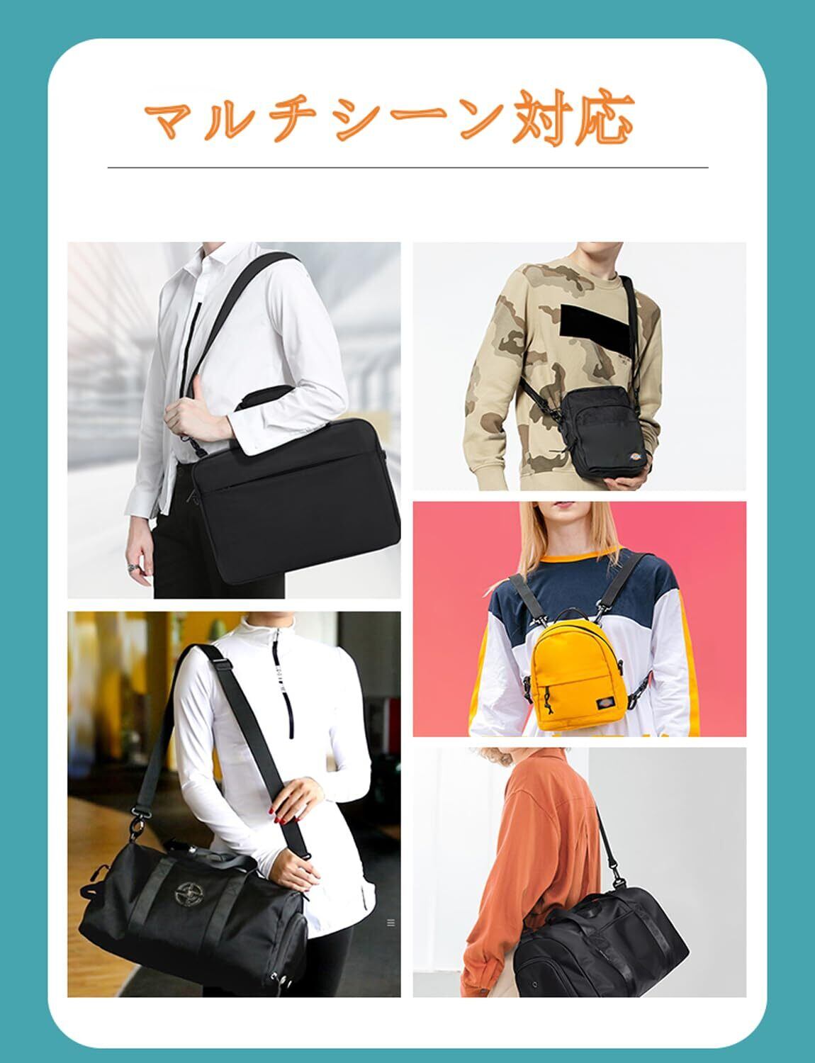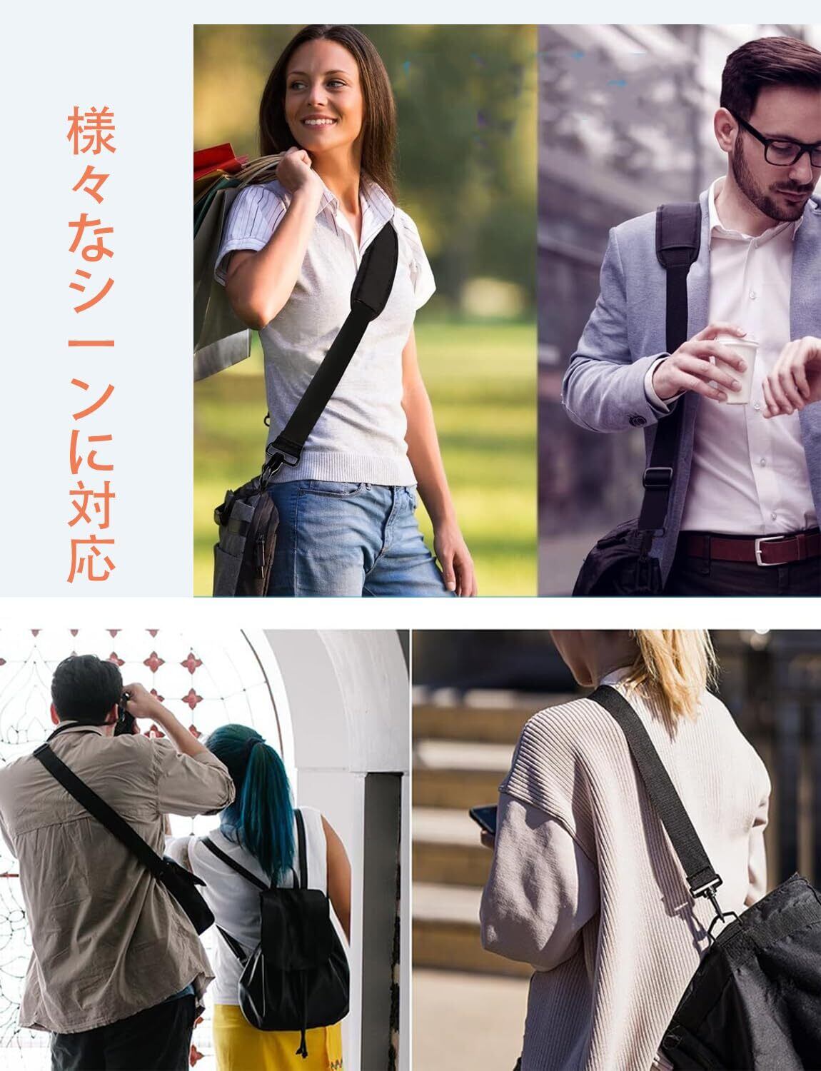 【幅広い用途】この製品は、カメラバッグ、コンピューター/タブレットバッグ、機材バッグ、ビジネスバッグ、スリーブ/ブリーフケース、ショルダーバッグ、スポーツバッグなど、ほとんどのバッグ製品に適したユニバーサルスペア/交換用ショルダーストラップです。 ストラップの両端にはフックとカラビナが付いており、ケースやバッグなどに簡単に取り付けたり取り外したりできます。ショルダーストラップのフック部分は360°回転するので、ストラップロープがよじれたりねじれたりしても、すぐに調整して元の位置に戻すことができ、とても便利です。
