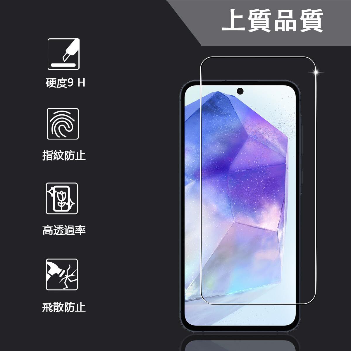 【9H硬度全面保護飛散防止】 用 Galaxy A55 5G 強化ガラスフィルムはオールガラスナノ防爆フィルムで、二次強化を使用して、硬度は9Hダイヤモンドレベルに達し、壊れることはありません。真空電気めっきプロセスを採用し、2.5Dラウンドエッジ仕様。また、用 Galaxy A55 SC-53E SCG27 強化ガラスフィルムには飛散防止加工が施され、落としたりぶつかって万が一割れてしまった際にも安心です。