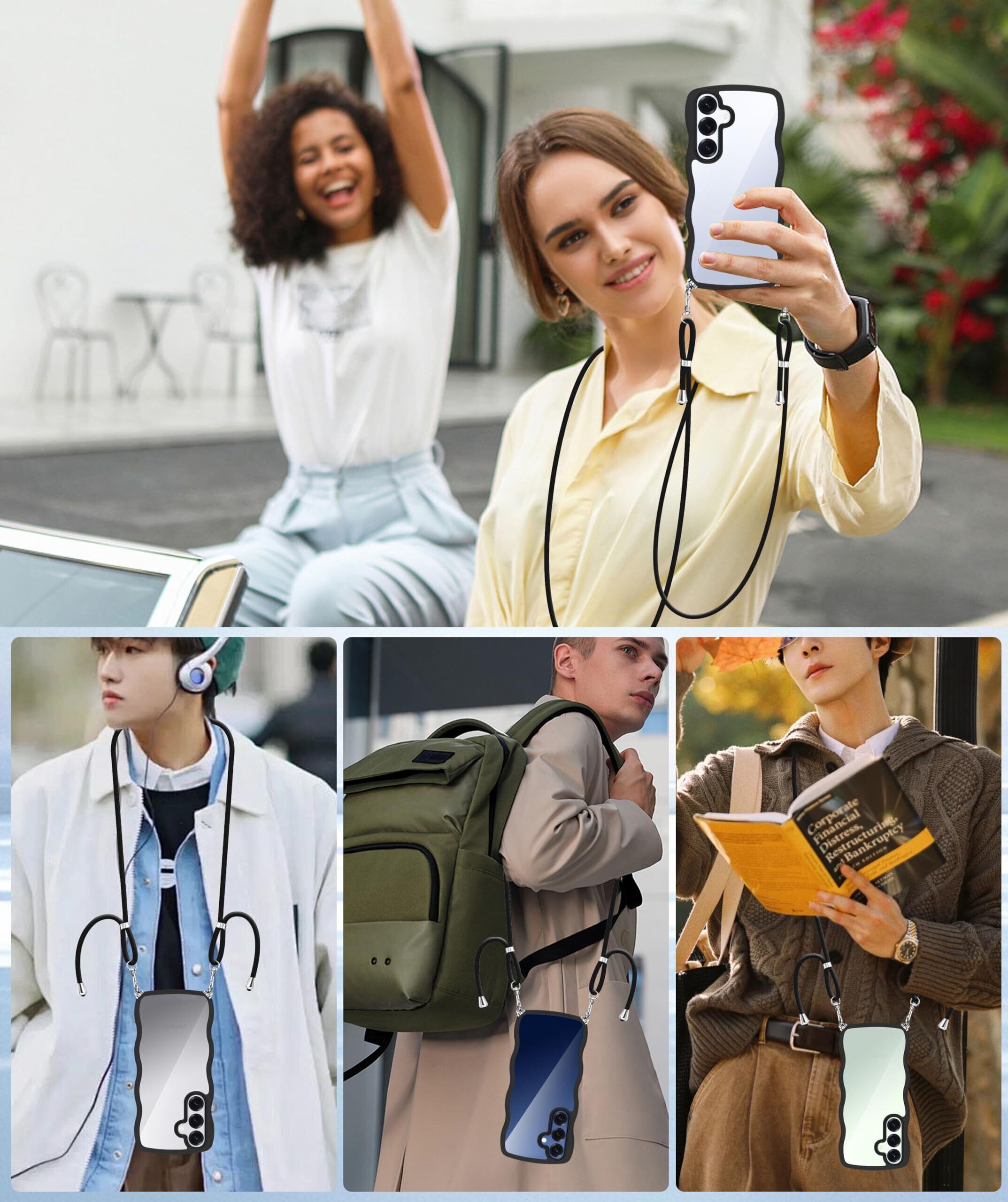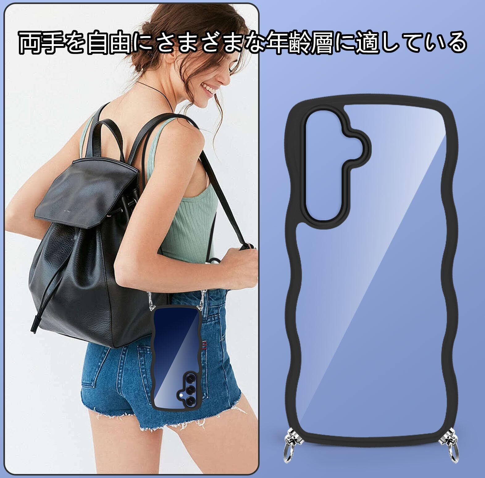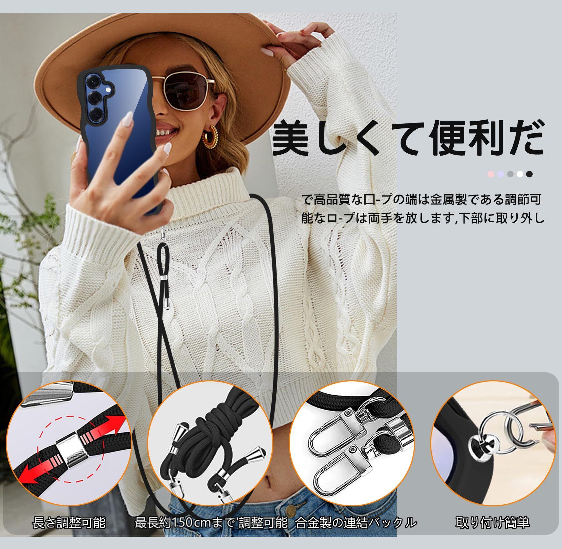Galaxy S25 ケース クリア ショルダー SC-51F スマホケース ス ストラップ付き ギャラクシーS25 カバー 耐衝撃 透明 かわいい 人気 薄型 軽量 首かけ 肩掛け 縄掛けケー 取り外し可能 長さ調整可能 ワイヤレス充電対応(ブラック)