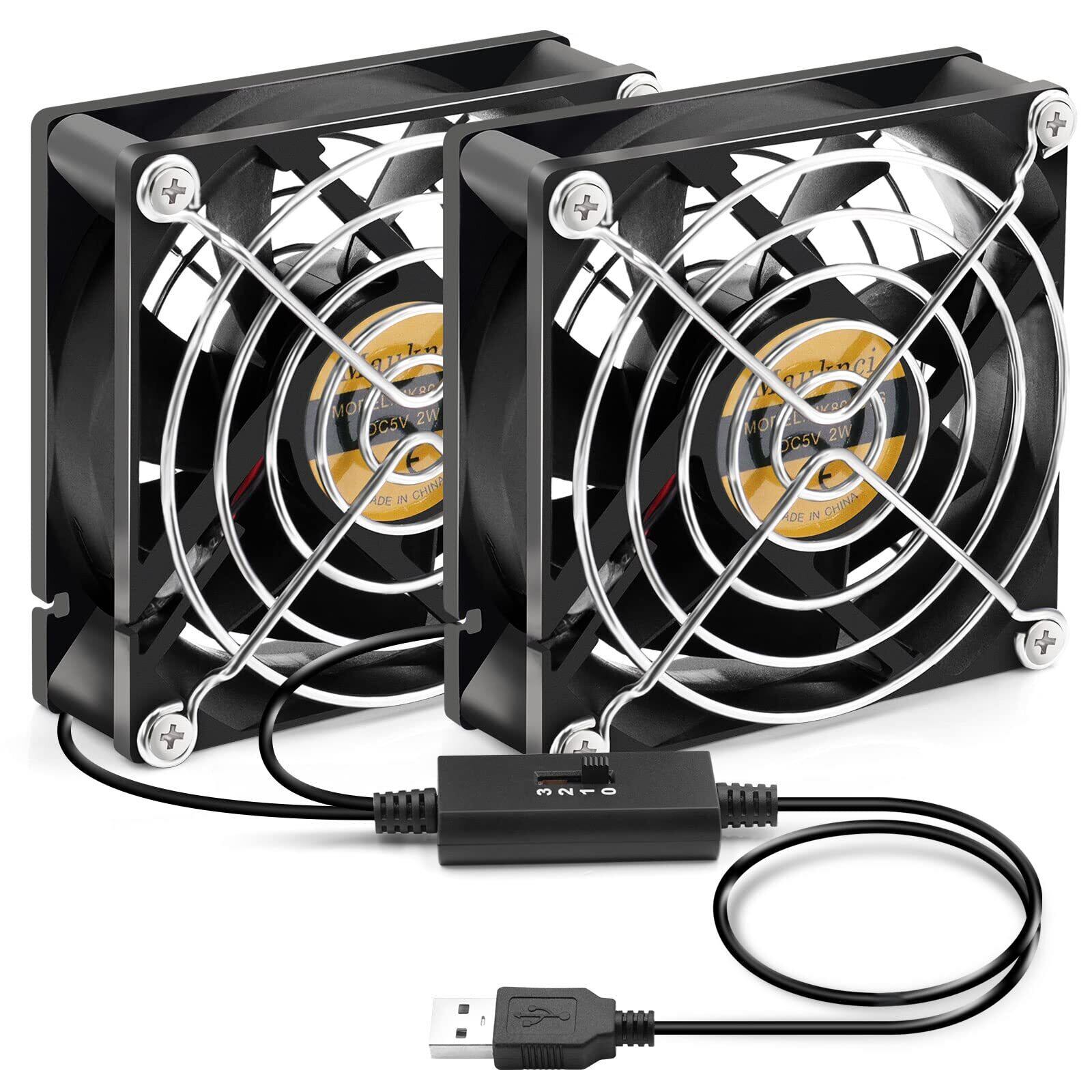 Mauknci usb ファン 静音 5v 3段階風量調整 usbファン 8cm 2連 長時間稼働用 小型 冷却ファン