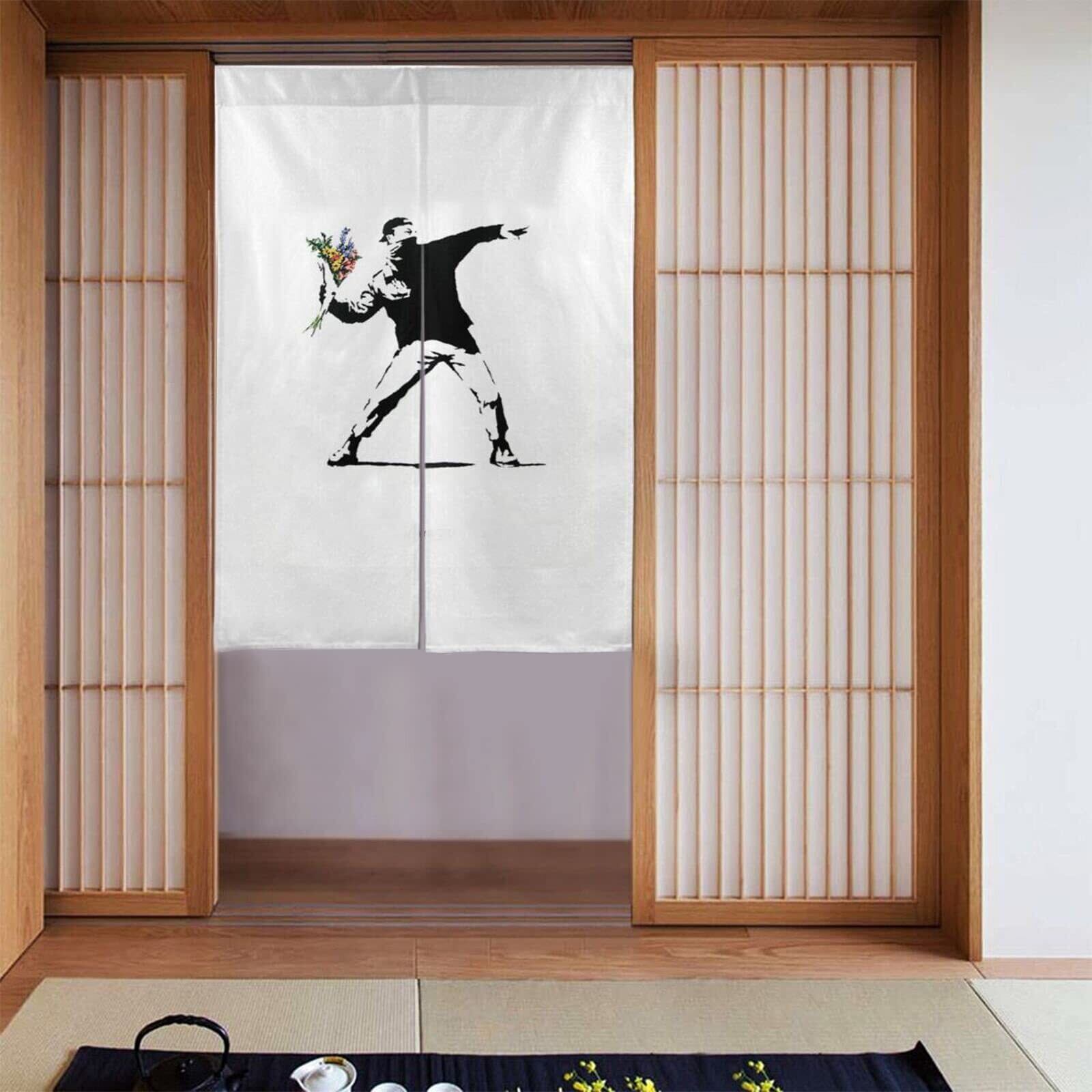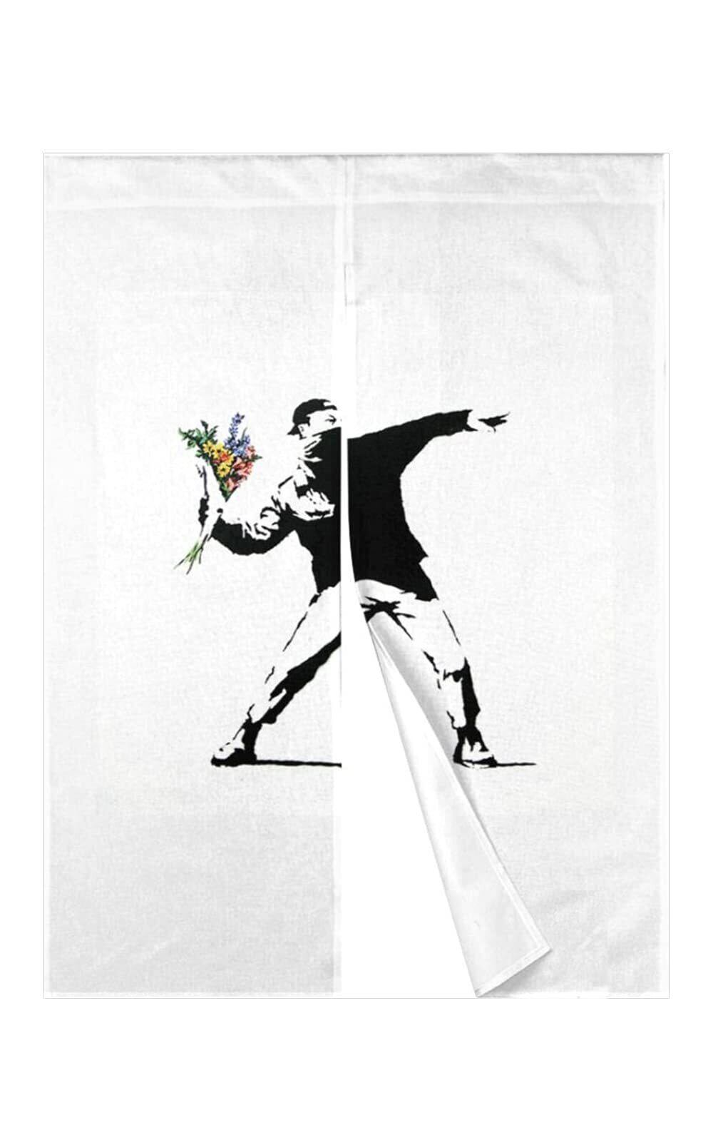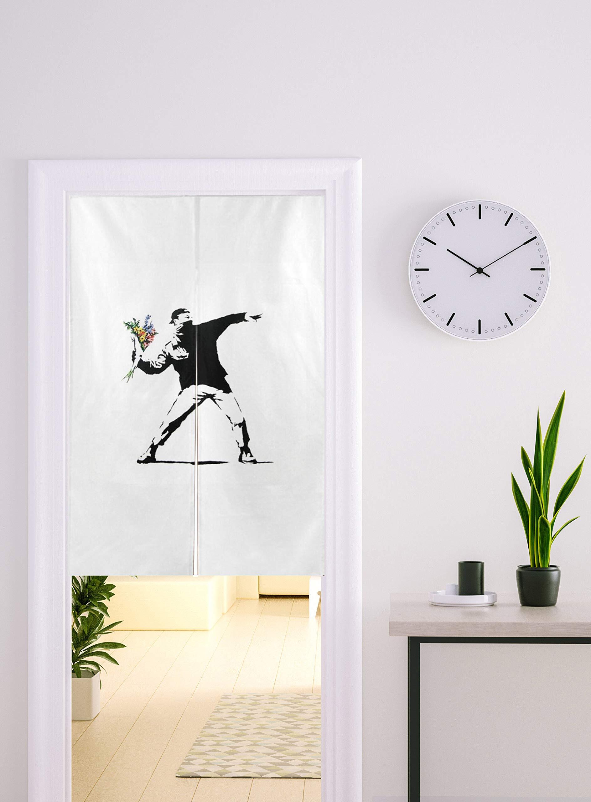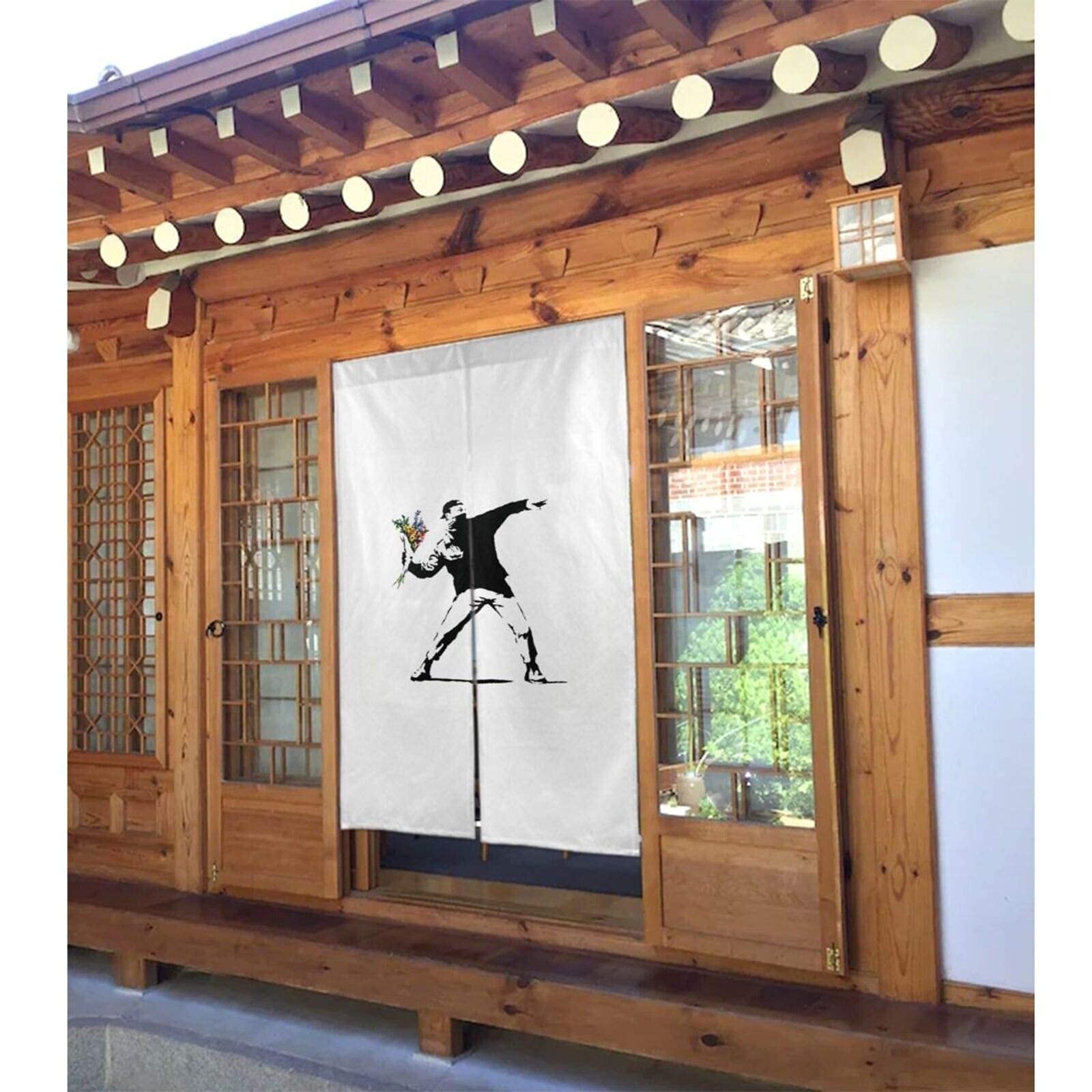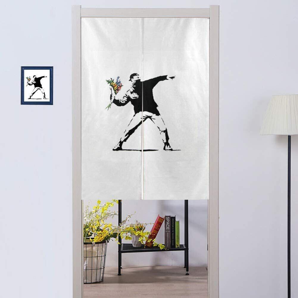 DiSAYoYoのれん おしゃれ バンクシー 男の子 間仕切り 遮光 北欧 ロング カーテン 暖簾 簡単 目隠し 見えにくい おもしろい 柔らかい 飾り 玄関 ドアカーテン キッチン リビング 飲食店 出入り口 85cmx120cm
