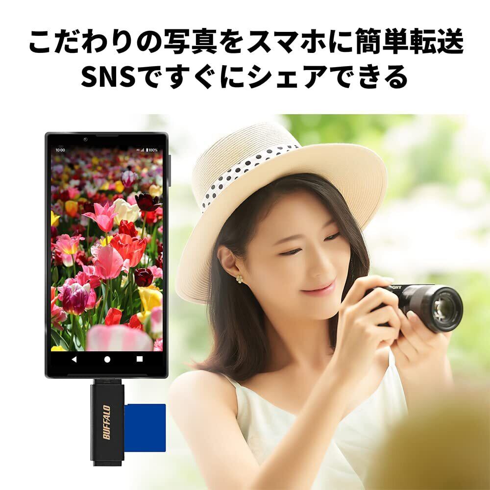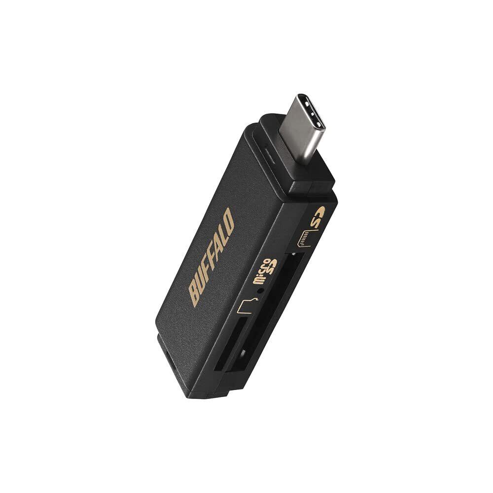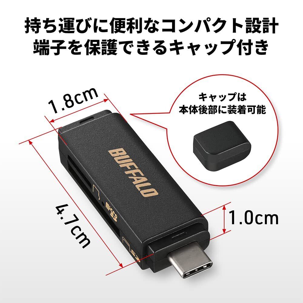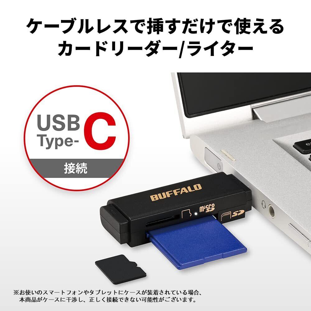 バッファロー USB3.2 Type-C 接続 ポータブルカードリーダー【 SDXC/SDHC/SD/MMC/RS-MMC/microSDXC/microSDHC/microSD/UHS-I 対応 】 iPhone 16 / 16 Pro / 15 / 15 Pro/iPad スマホ タブレット パソコン 写真バックアップアプリ BSCR125U3CBK