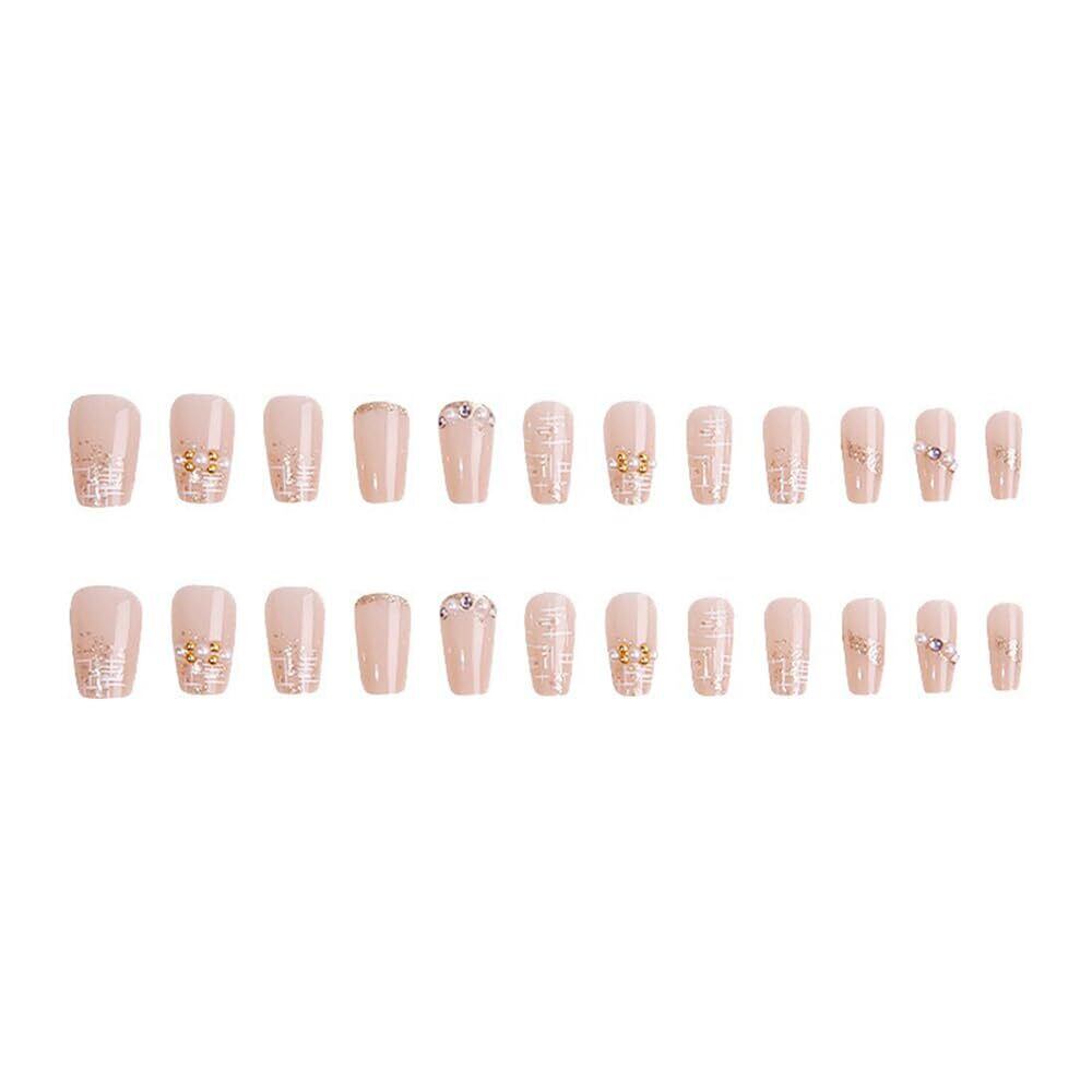 ISHR 24枚入 ネイルチップ ショート ネイルチップ 人気 和風 かわいい ネイルシール 女性おしゃれな シンプル 入学式 卒業式 成人式 結婚式 パーティー (F1, ミディアム)