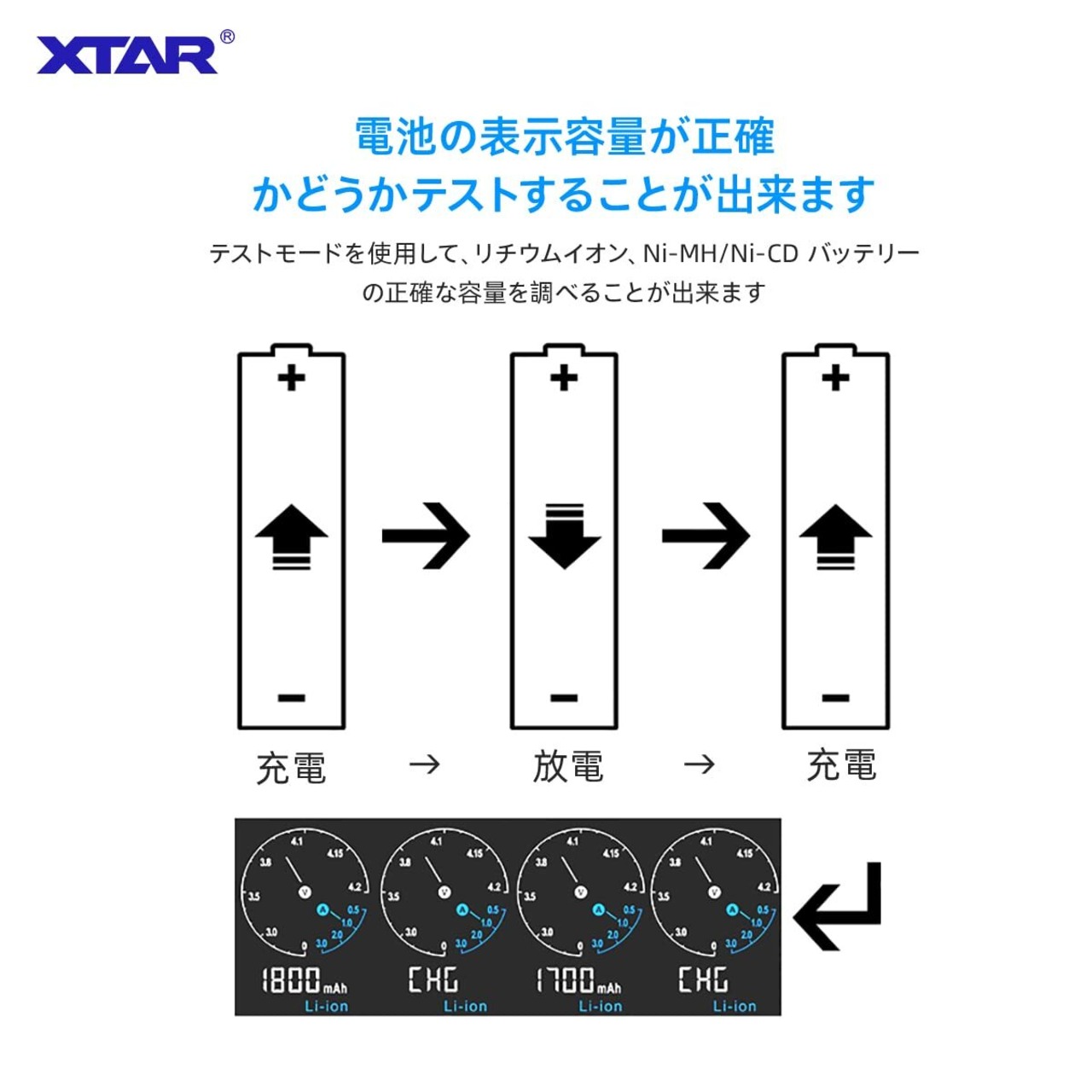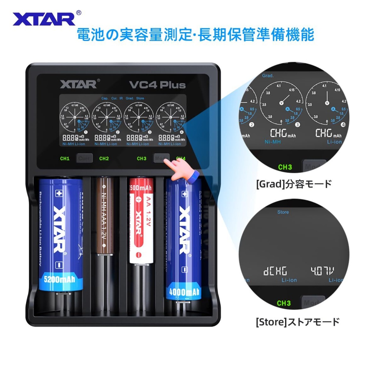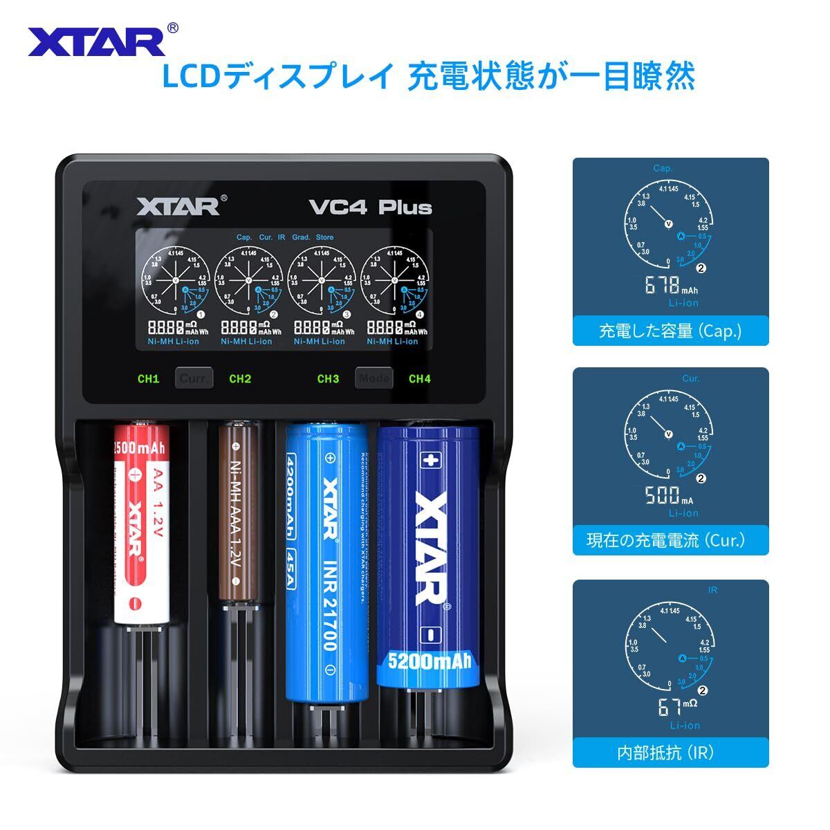 リチウムイオン電池 18650 充電器 XTAR VC4 Plus (VC4SL同モデル)単三·単四 ニッケル水素/ニカド電池 18650 21700 16340 26650 3.7Vリチウムイオン に対応 電池容量測定