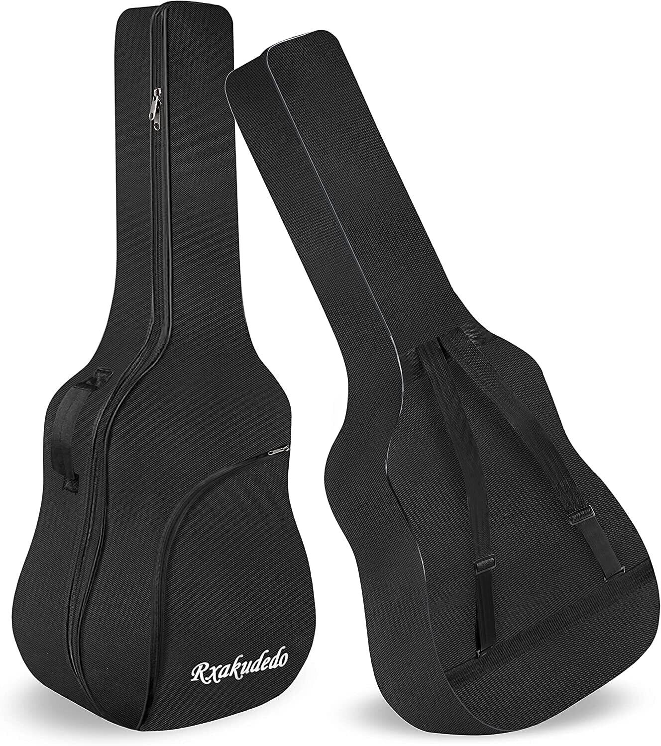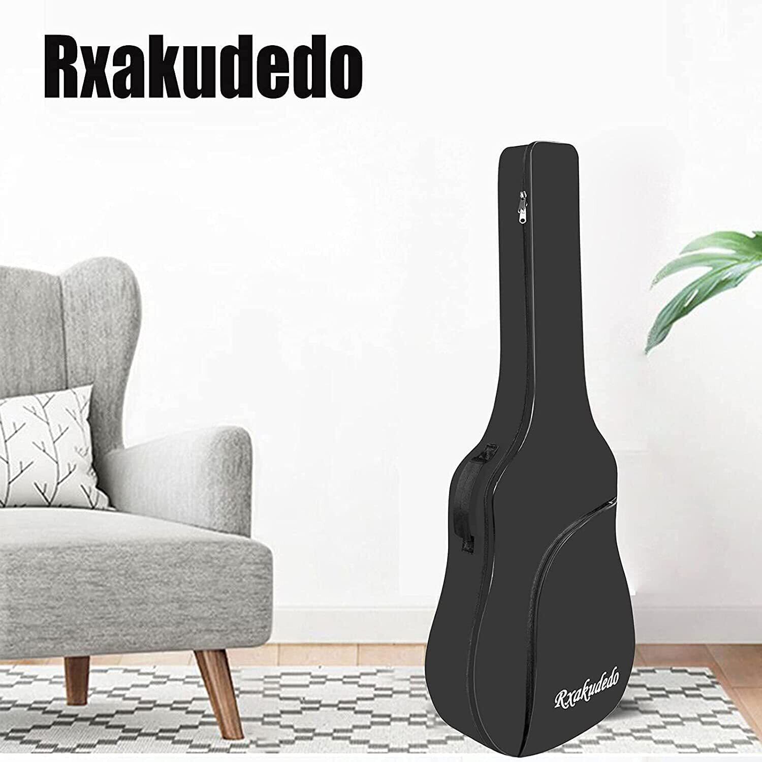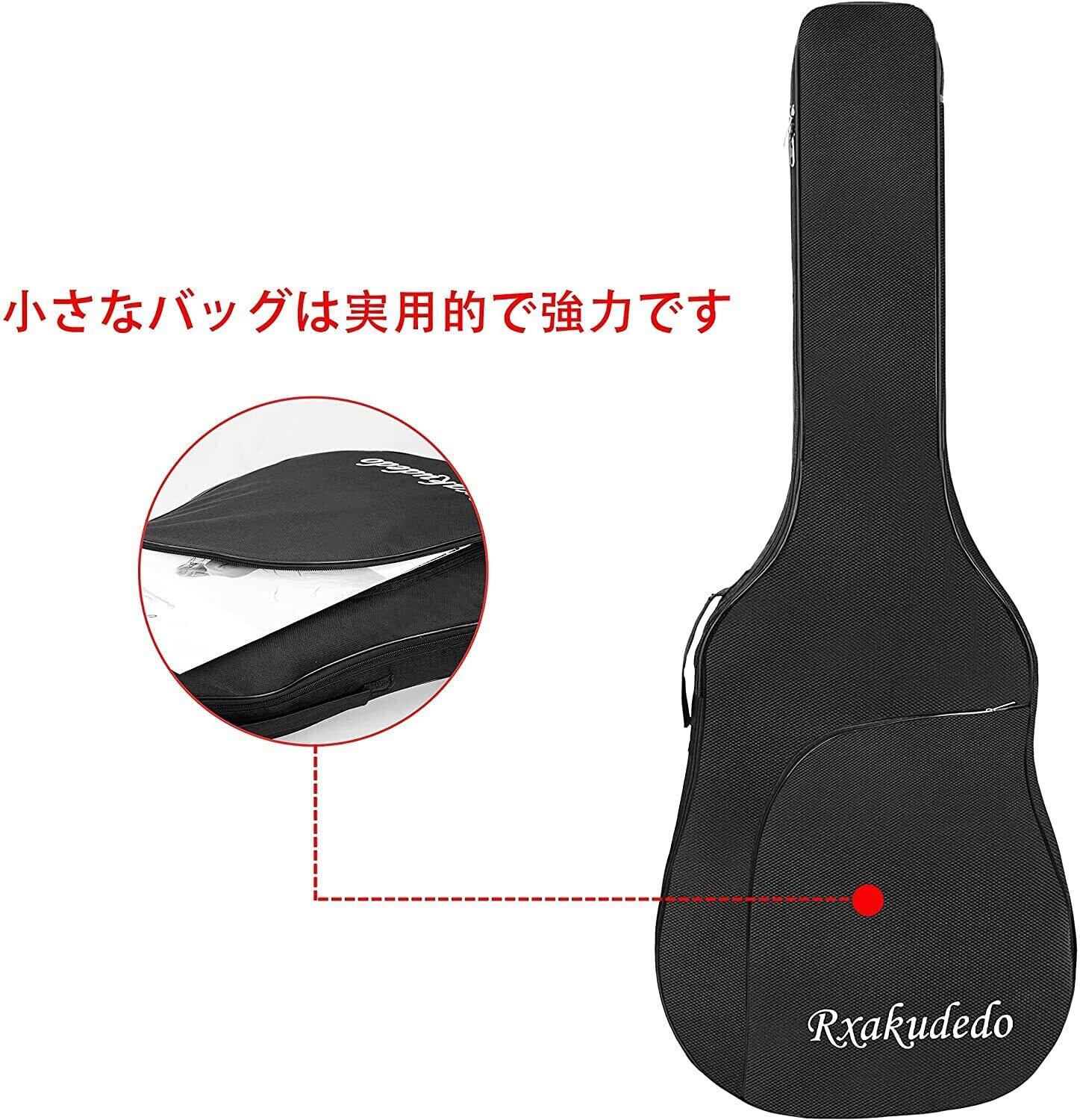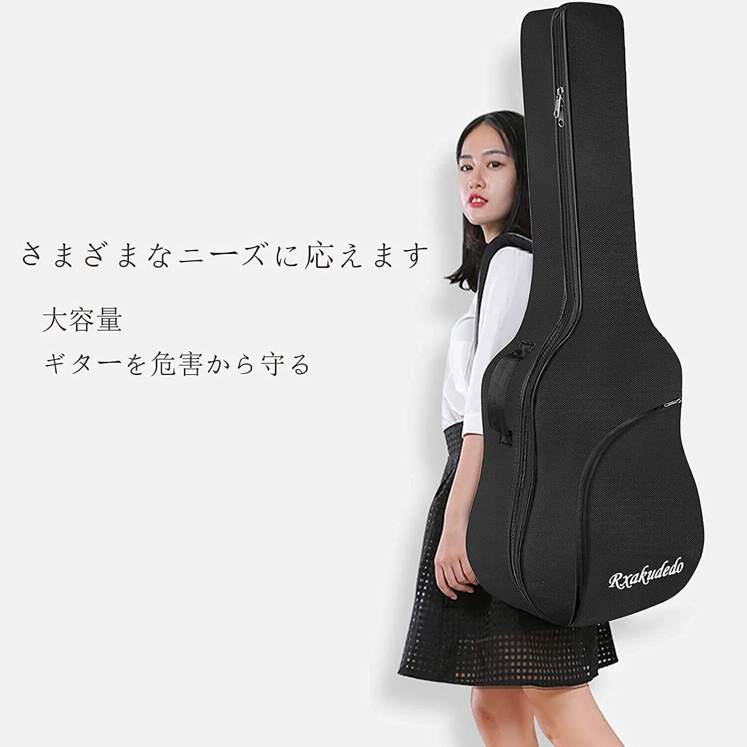 Rxakudedo ギターバック ギターケース アコースティック ギターケース ギグバッグ アコースティックギターソフトケース 40/41 guitar インチ(101.6cm/104.2cm)ギター 背負い・手提げ両用 2Way ポケット付き 防水 オックスフォード布 軽量 107*42*14cm ブラック