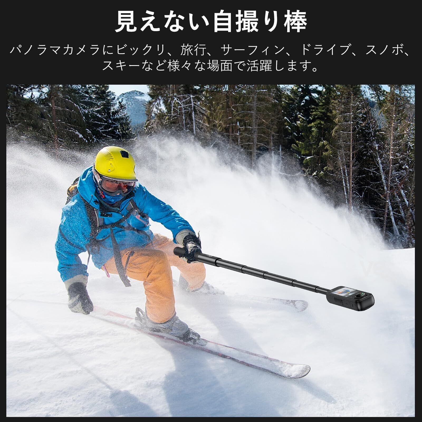VRIG 135cm 見えない自撮り棒 【強化バージョン】 超軽量 ストラップ付き Insta360 X/5X4/X3/GO 2/ONE X2/ONE RS 1インチ360度/ONE RSに対応 自撮り棒 1/4”ネジ 27cm~135cmアルミ+シリコン製 GoProアダプター付き