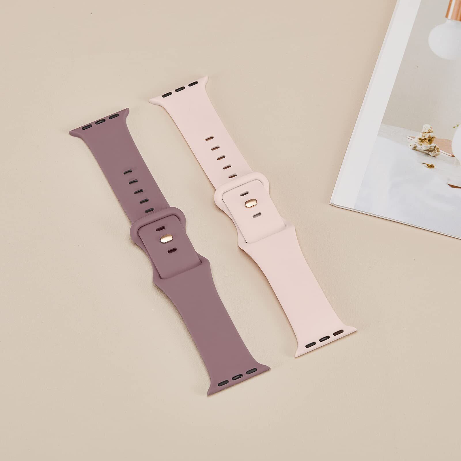 コンパチブル Apple Watch バンド 49mm 46mm 45mm 44mm 42mm アップルウォッチ バンド シリコン製 スポーツバンド iwatch Series 10/9/8/7/SE/6/5/4/3/2/1/Ultra/Ultra2 交換ベルト 通気 柔らかい 防水 耐衝撃 男性 レディース スモークパープル/ピンクサンド