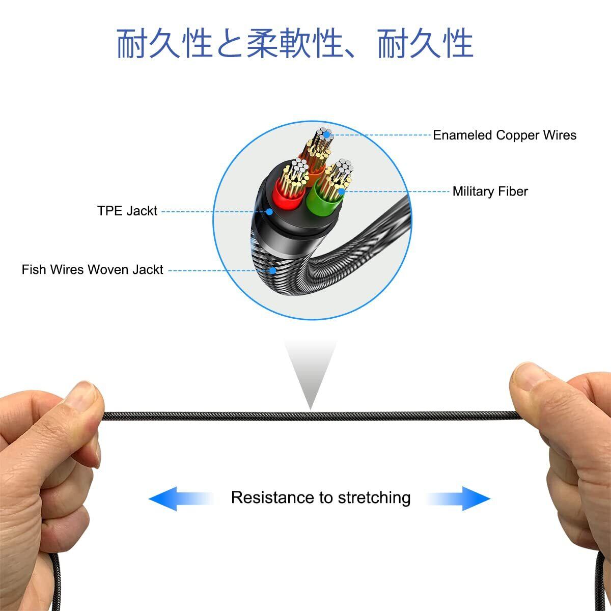 【360度折りたたみと耐久性】オーディオケーブルの長さは2Mで、エナメル線編組材料で作られており、オーディオケーブルは頑丈で柔軟性があり、日常の激しい使用にも簡単に耐えることができ、軽量で直接ポケットに入れることもできます。
