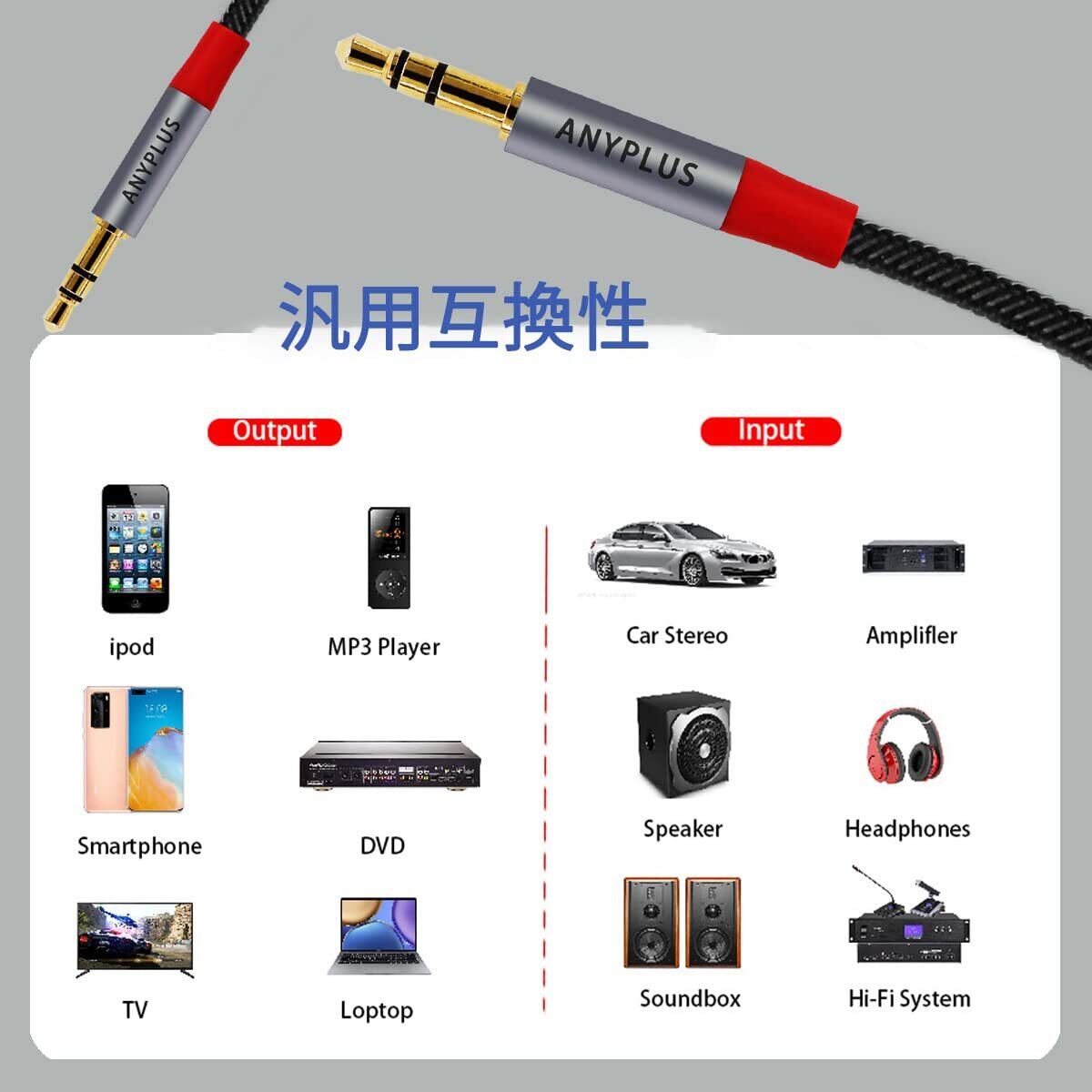 【幅広い用途】ANYPLUS 3.5mmオーディオケーブルは、あらゆる3.5mmオーディオポートデバイス、ポータブルスピーカー、ホームステレオに簡単に接続でき、Beatsヘッドフォンなどの標準3.5mmジャックを備えたあらゆるデジタルデバイスに適しており、iPhone、iPod、サムスンギャラクシー、ラップトップ、タブレット、MP3プレーヤー、携帯電話、カー/ホームAUXオーディオ、スピーカーなどと互換性があります。