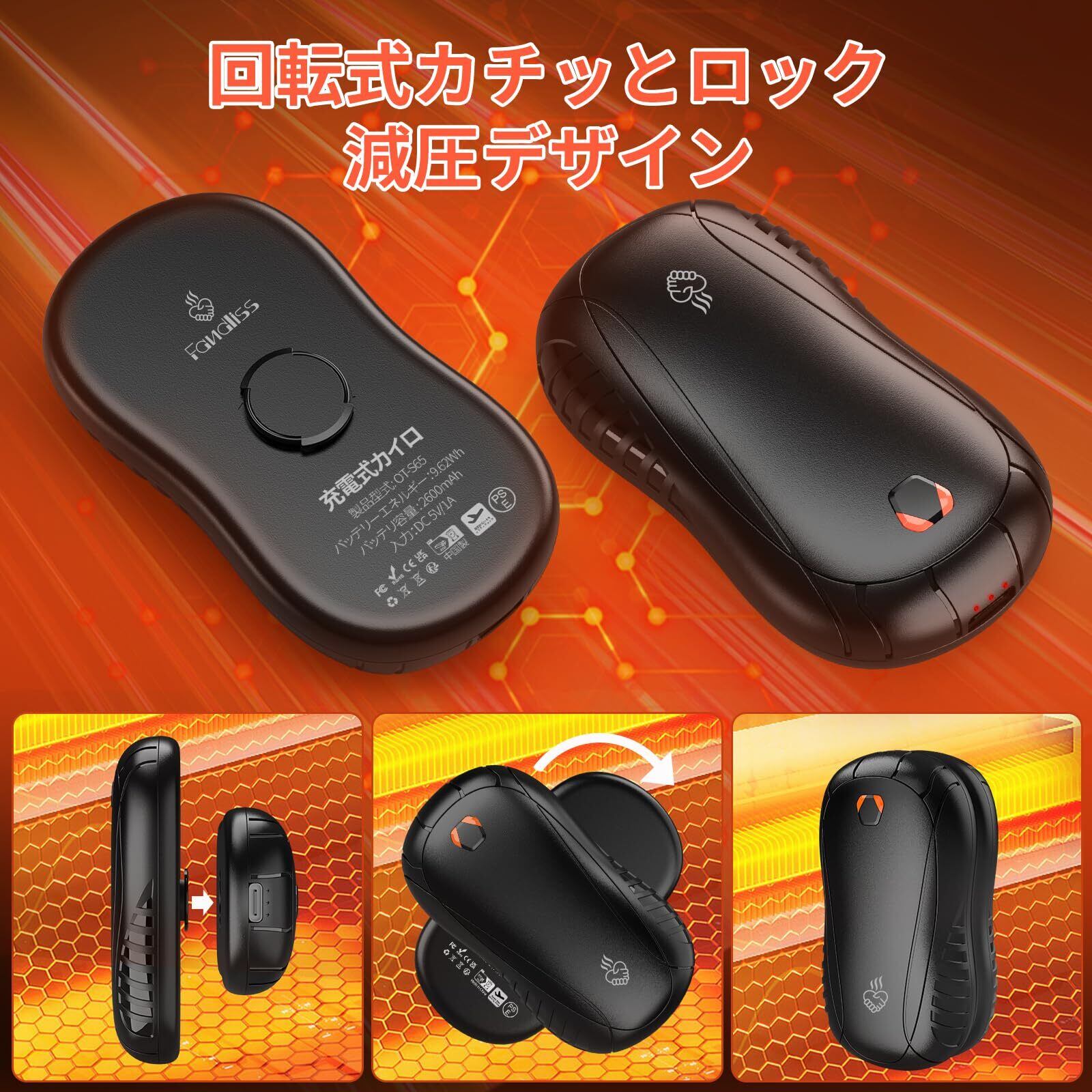 充電式カイロFANDLISS 電気カイロ【新型分離式設計・2個セット】USB充電式5200 mAhホッカイロ 充電式 両面発熱 3秒急速発熱 3階段温度調節ハンドウォーマー 長時間連続発熱可能 電子カイロ小型 超軽量便利 持ち運びやすい 繰り返し使える 旅行 アウトドア 防寒グッズ 通勤通学 プレゼント用 (ブラック)