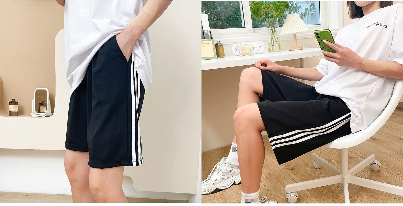 ショートパンツのウエスト部分はストレッチのゴム素材、調節可能な紐も付きので、自分で調整可能、快適性が良くです。おしゃれで実用的なアイテムです。