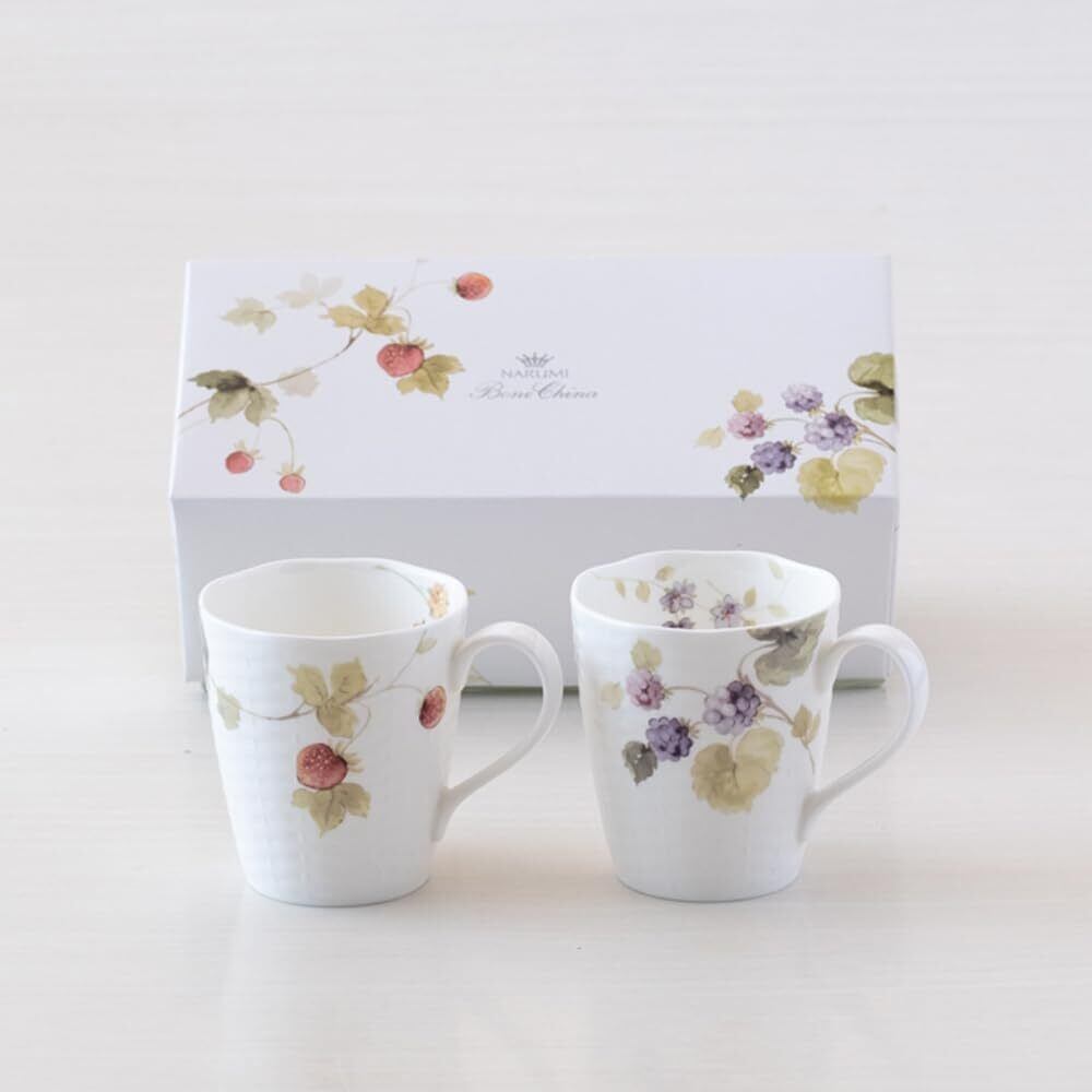 NARUMI(ナルミ) ペア マグカップ ルーシーガーデン 370cc ベリー柄 2柄セット かわいい おしゃれ レリーフ 大きめ 電子レンジ温め 食洗機対応 ギフト箱入り 96011-21903P