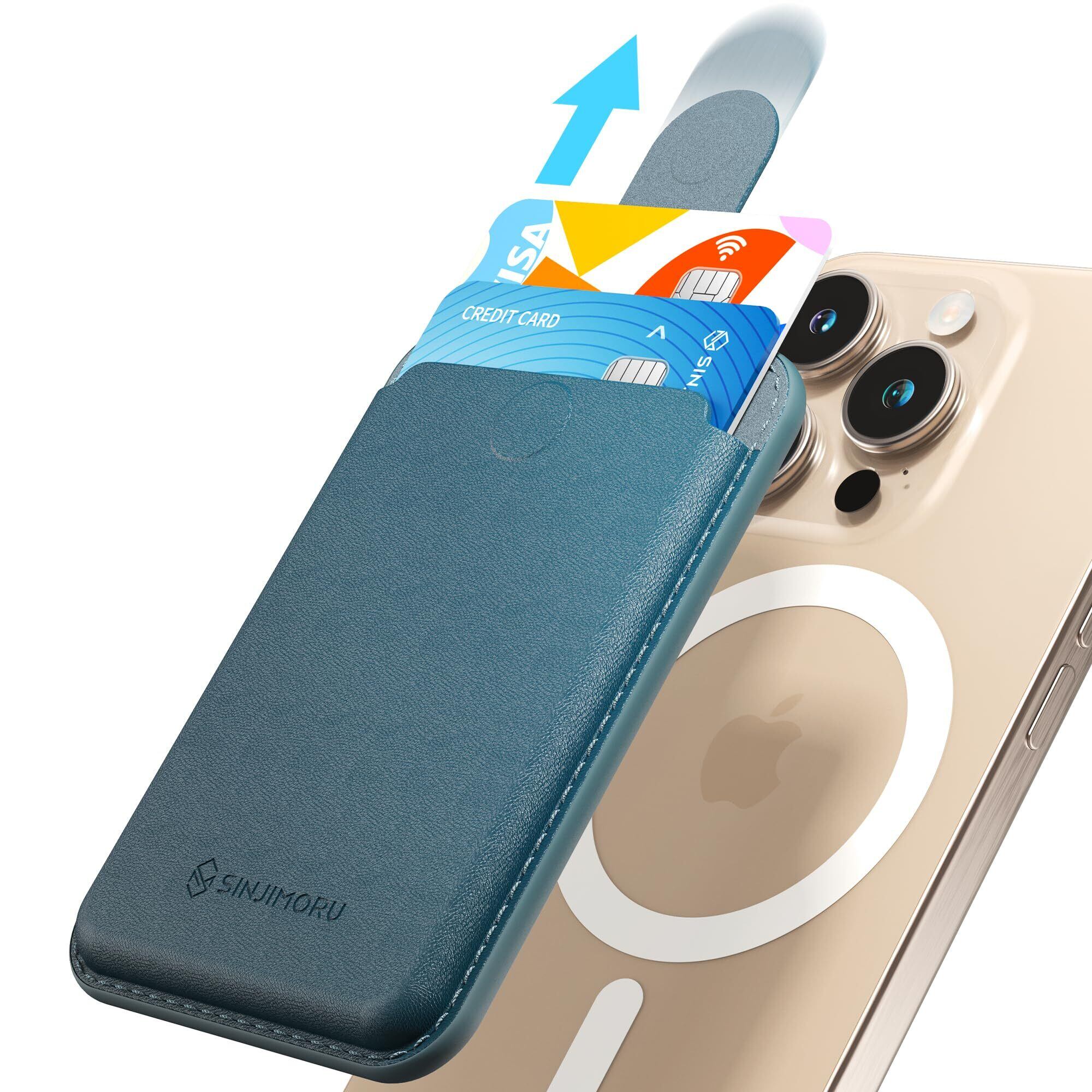 [Sinjimoru] プル & スライド magsafe対応 カードケース, 37g 軽量 ウォレット, タプを引いて取り出す スマホカードケース, カード2枚収納 マグセーフ 財布, iPhone 16/15/14/13/12 シリーズ対応, M-Pull Tab Wallet マリンブルー