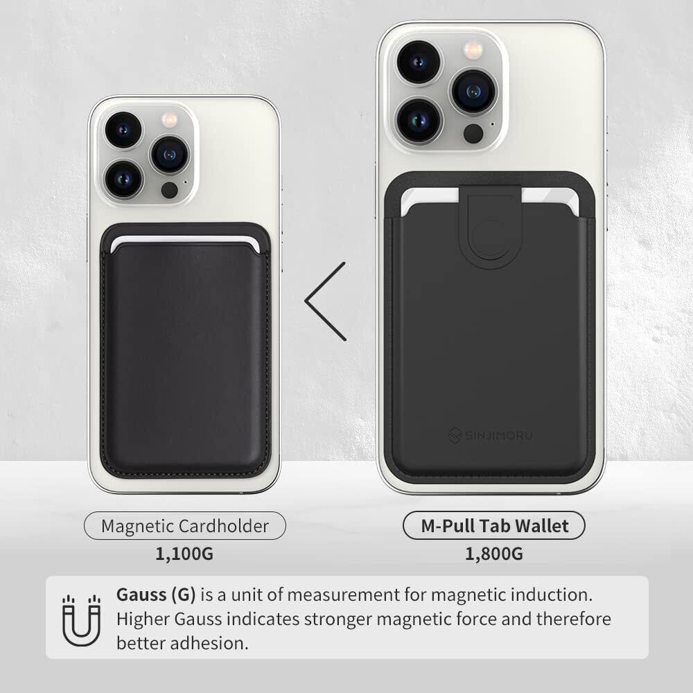 【強力なマグネットカードホルダー】 M-Pull Tab Walletは、オリジナルのウォレットと比べて1.8倍の強力な磁力を提供します。注意:最適なパフォーマンスのために、M-Pull Tab WalletはMagSafeケースと一緒にご使用ください。