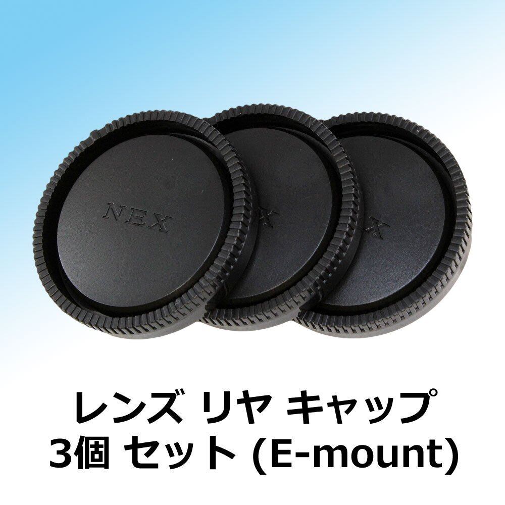 【商品の概要】 ソニー SONY Eマウント 互換のレンズリアキャップ3個セット。シンプルなロゴ無しのデザイン。位置合わせマーク付き。回しやすい側面ローレット形状有。