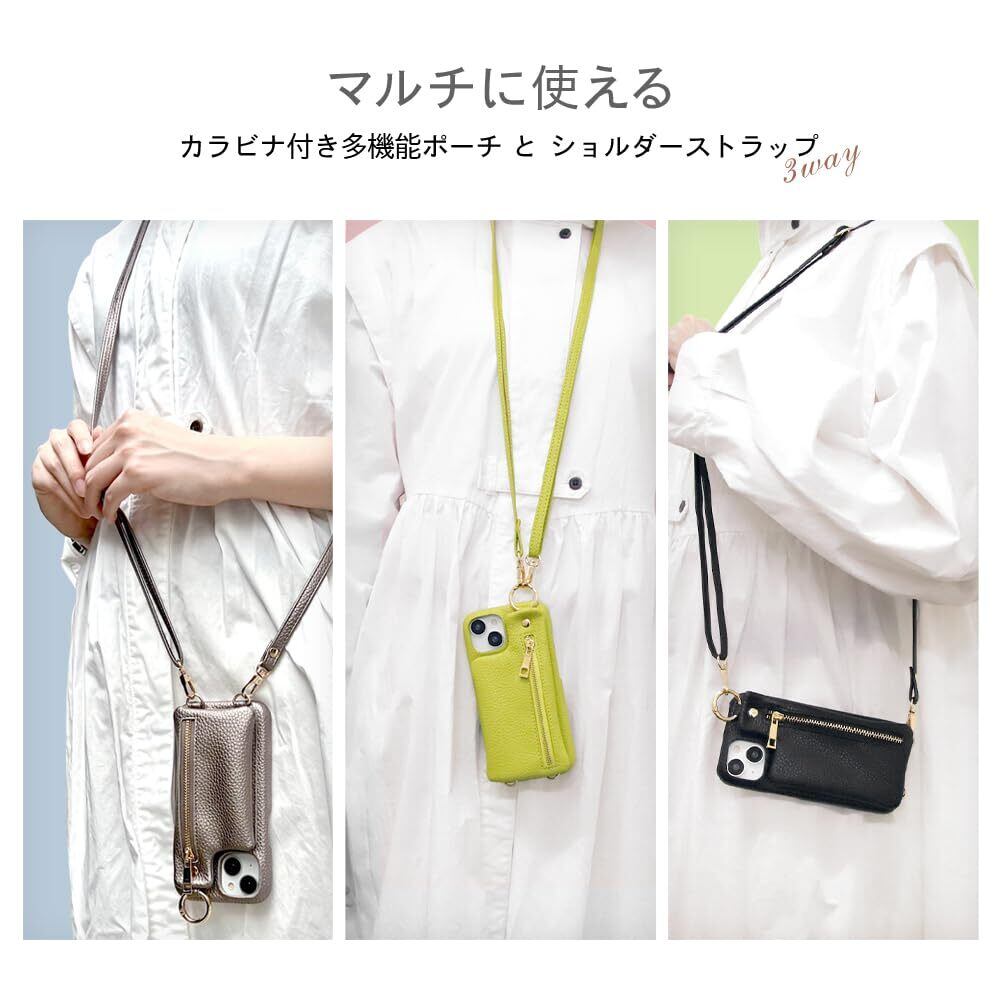 デジタルアルキミスト iPhone 15 ケース オープンレザーケース ショルダーストラップ ポーチ付き m1n1 ピスタチオ