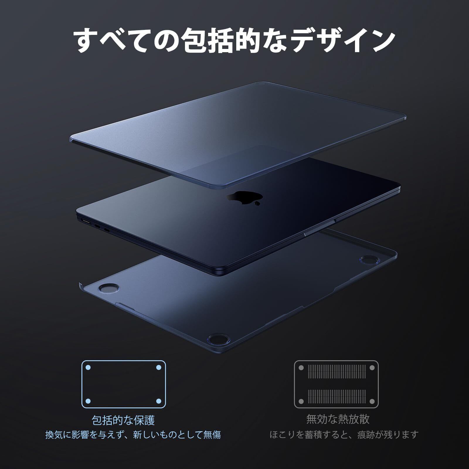 精密なフィット感、簡単な取り付け:MacBook Air M4カバー 精密なカットアウトとマイクロクリップデザインにより、MacBookにぴったりフィットし、素早く取り付けられ、すべてのボタンとポートに簡単にアクセスできます