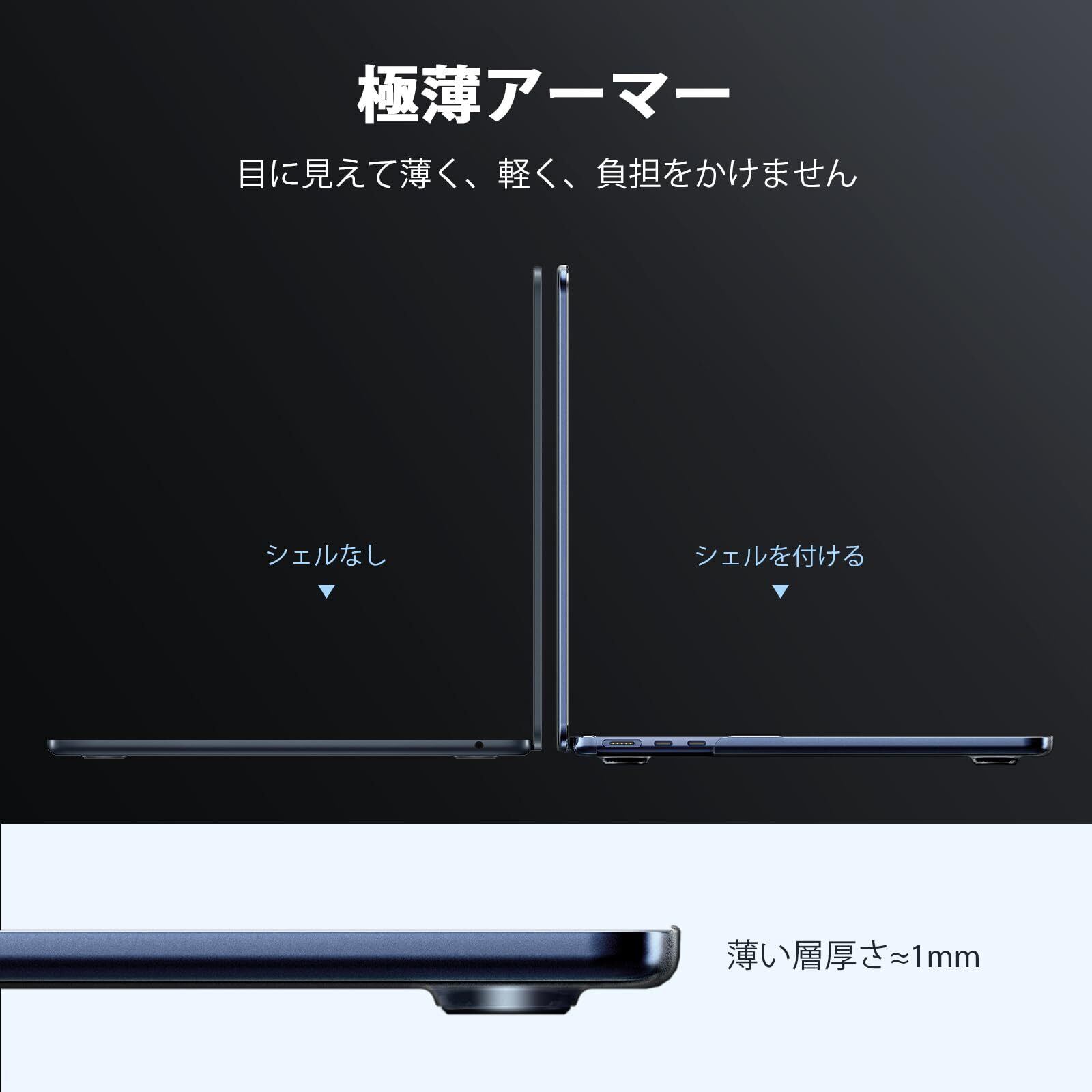 EooCoo [2025 MacBook Air 13 インチ M4 M3 M2用ケース 超薄型アーマー] 対応A3240 A3113 A2681 2025 2024 2022 、[100% マッチミッドナイトMacBook Air 13.6] [指紋防止] マット保護ハードシェル & 0.12MM 極薄TPU 日本語配列キーボードスキンカバー、ミッドナイトマットクリア