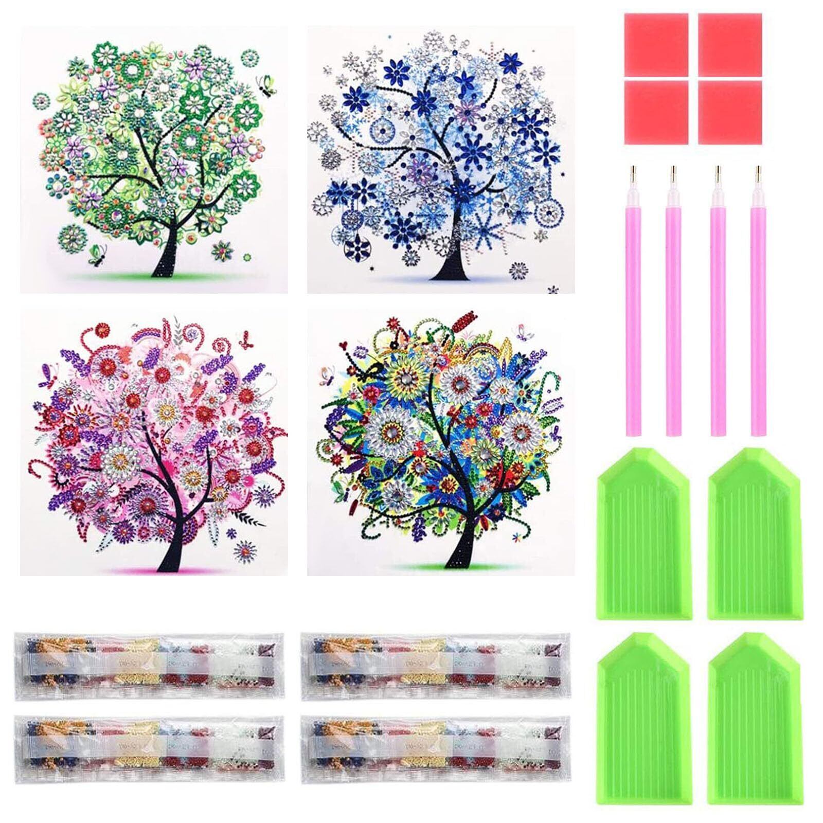 サムコス 5Dダイヤモンドアート ダイヤモンドの絵画キット 刺しゅうキット 4枚セット 全面貼り付け 大人の子供 DIY 手芸キット 家の壁の装飾