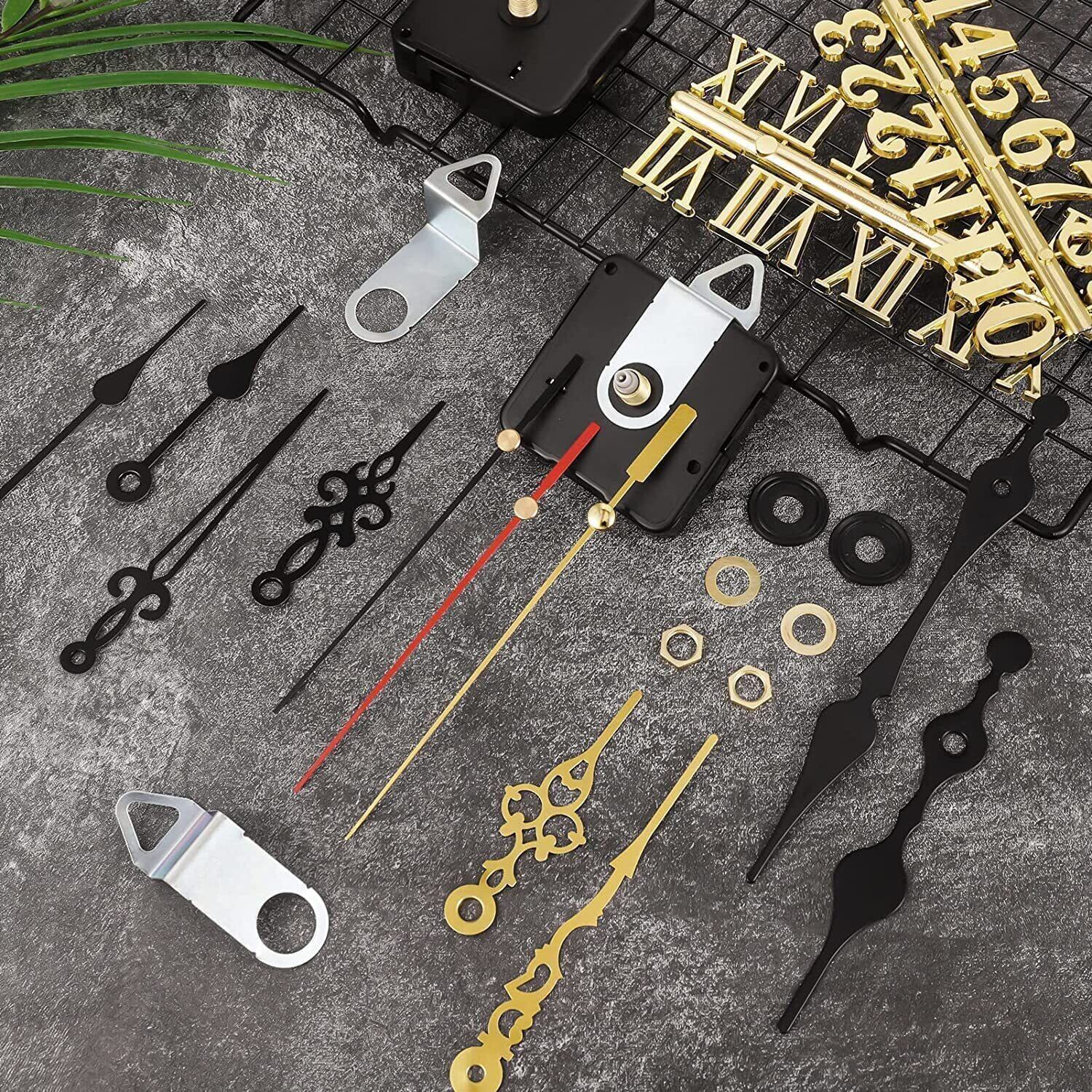 Saitrewed 時計 ムーブメント 4枚セット 手作り 時計番号キット 2個セット 針セット 掛け時計用 時計シャフト 時計キット 時計補修パーツ DIY補修部品 アラビア数字とローマ数字付き 時計 アクセサリー 修理 寝室、リビング、書斎、子供部屋、 オフィス、お店など 交換部品 ブラック