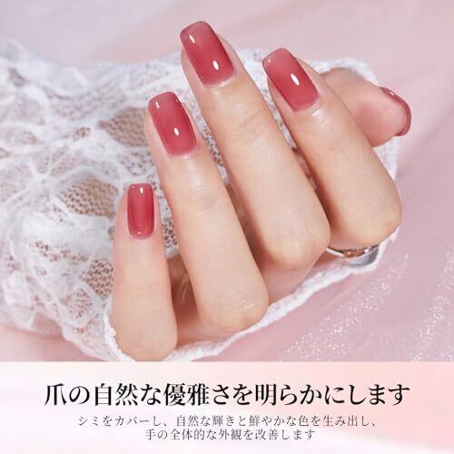 ジェルネイル 透け感:薄く塗るジェルネイル、ゼリーのようなみずみずしい透明感。厚塗りや2~3度塗りでしっかり発色。塗り方や塗布量を変えて、お好みのカラーに仕上げることができます。通学、結婚式、イベント、入学式、オフィスと日常など様々な場面に、ごキラキラ可愛いに
