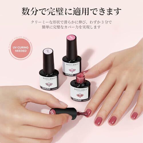 UV/LEDライト対応:UV/LEDライトで硬化必要です。 硬化時間目安:36W UVライト:約120秒 / 36W LEDライト:約60秒。ヒント:ご使用になるライトや塗布量によって多少の増減はあります。カラー見本と実際の色にはディスプレイなどにより異なって見える場合がございます。 予めご了承くださいませ
