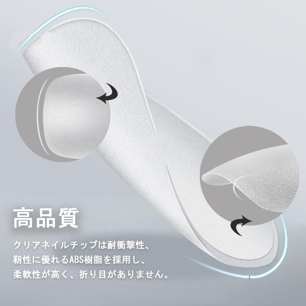 【高品質】クリアネイルチップは耐衝撃性、靭性に優れるABS樹脂を採用し、柔軟性が高く、折り目がありません。曲げても折れ曲がらず、自己修復性に優れています。