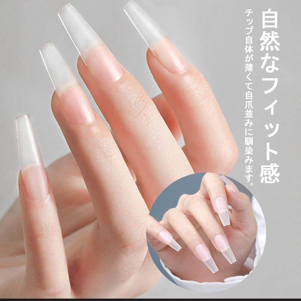 【自然なフィット感】チップ自体が薄くて自爪並みに馴染みます。ネイルチップ全体が爪にフィットしやすくなり、不快感を感じなくなります。デザイン見本用のチップとして、とても綺麗で理想的なネイルチップを作ることが出来ます。