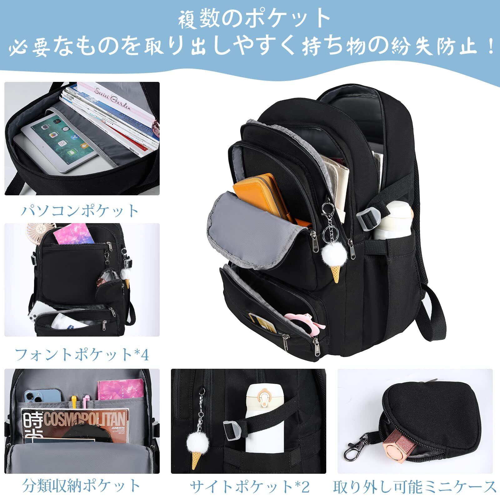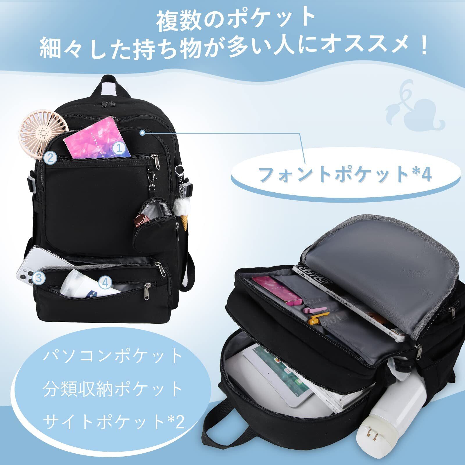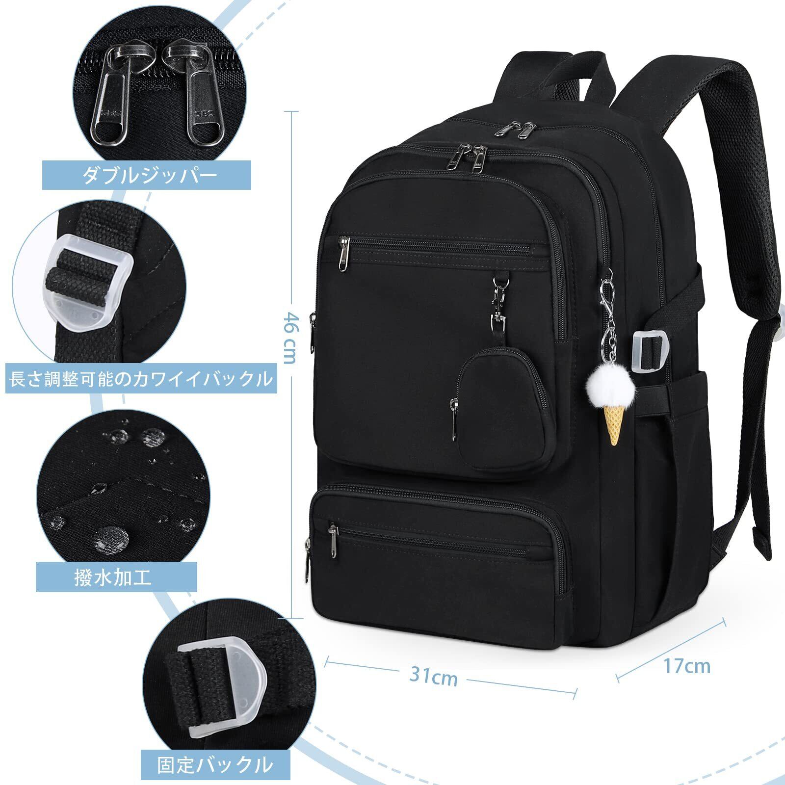 [RAINSMORE] リュック レディース バックパック 大容量 通学リュック 人気 高校女子 リュックサック 通学 通勤 旅行 撥水 おしゃれ 黑
