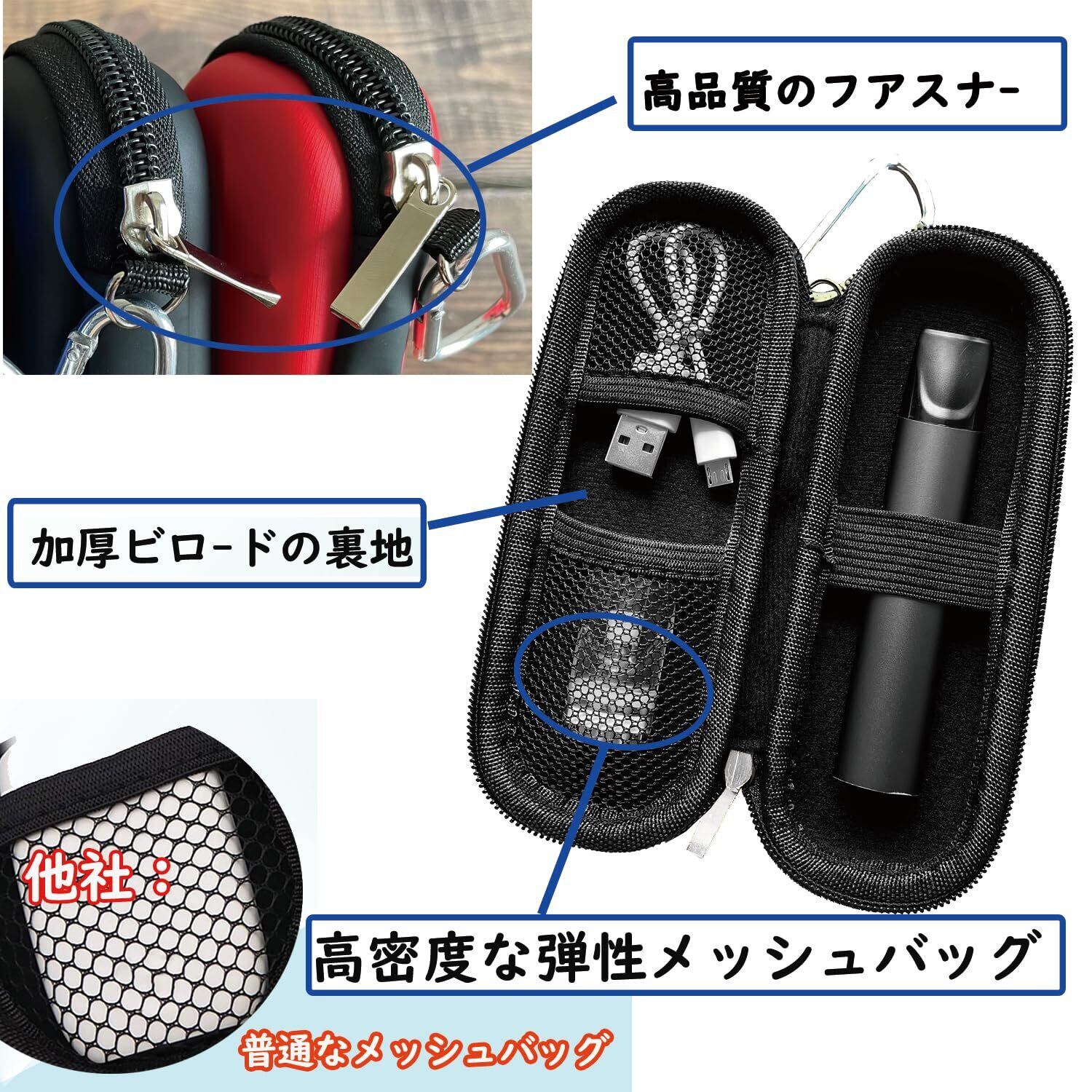 【弾性ダブルメッシュポケット】弾性二つメッシュポケットはドクターベイプ2/ドクタースティック タイプxのアクセサリーセットを収納できるだけでなく、また取り替えるカートリッジとケーブルを分類して置くことができ、より清潔で安全です。ご注意:ケースのみの販売です。(Model2/Dr.Stick TypeXとそのアクセサリーなどを含まれていません)。