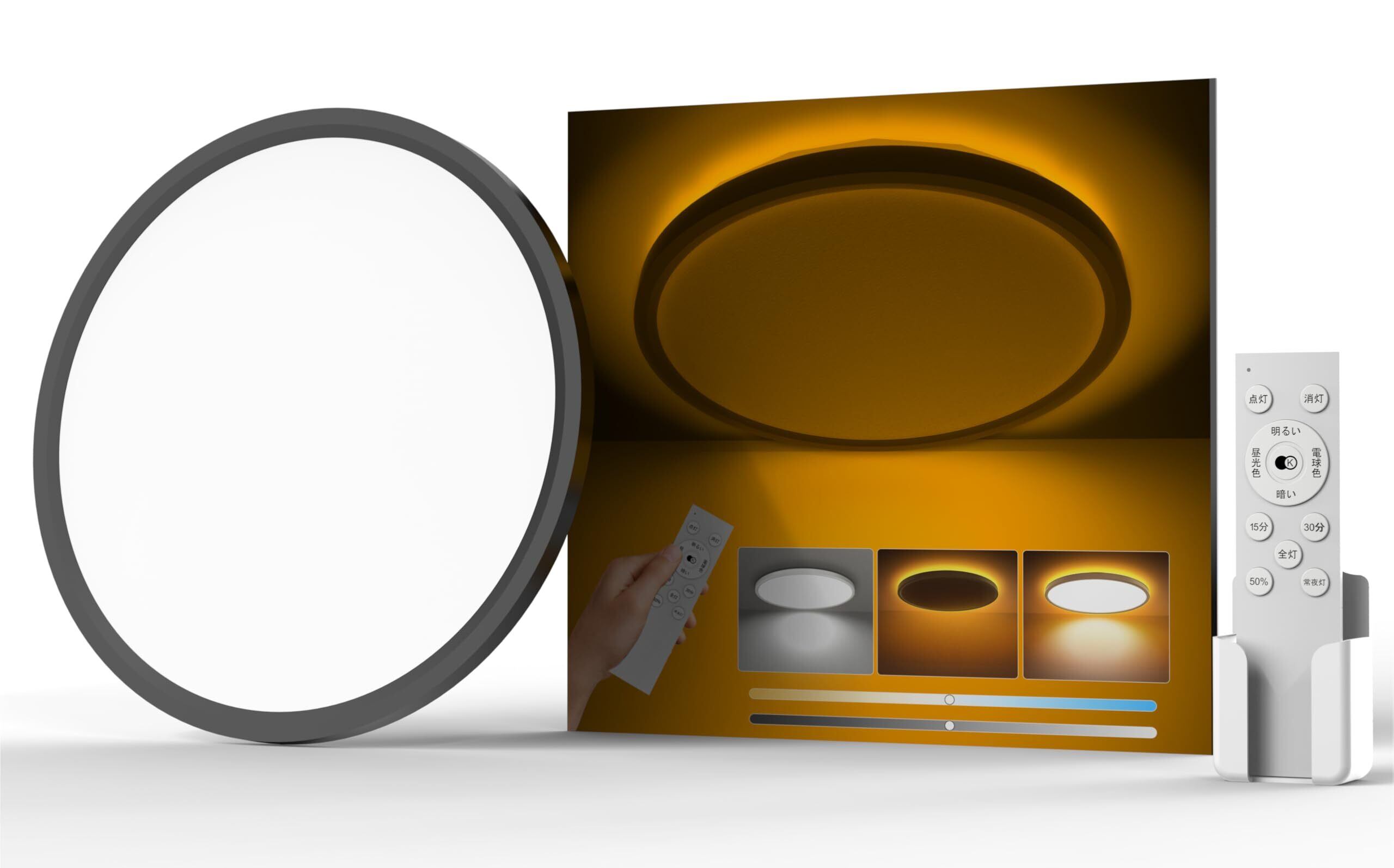 Antree LEDシーリングライト 6畳 3600lm おしゃれ 天井照明器具 間接光常夜灯付き 調光調色 極薄型 日食 雰囲気ナイトライト 電気 蛍光灯 リモコン付き操作 6~8畳 Ceiling Light 寝室/リビング/キッチン適用 黒枠