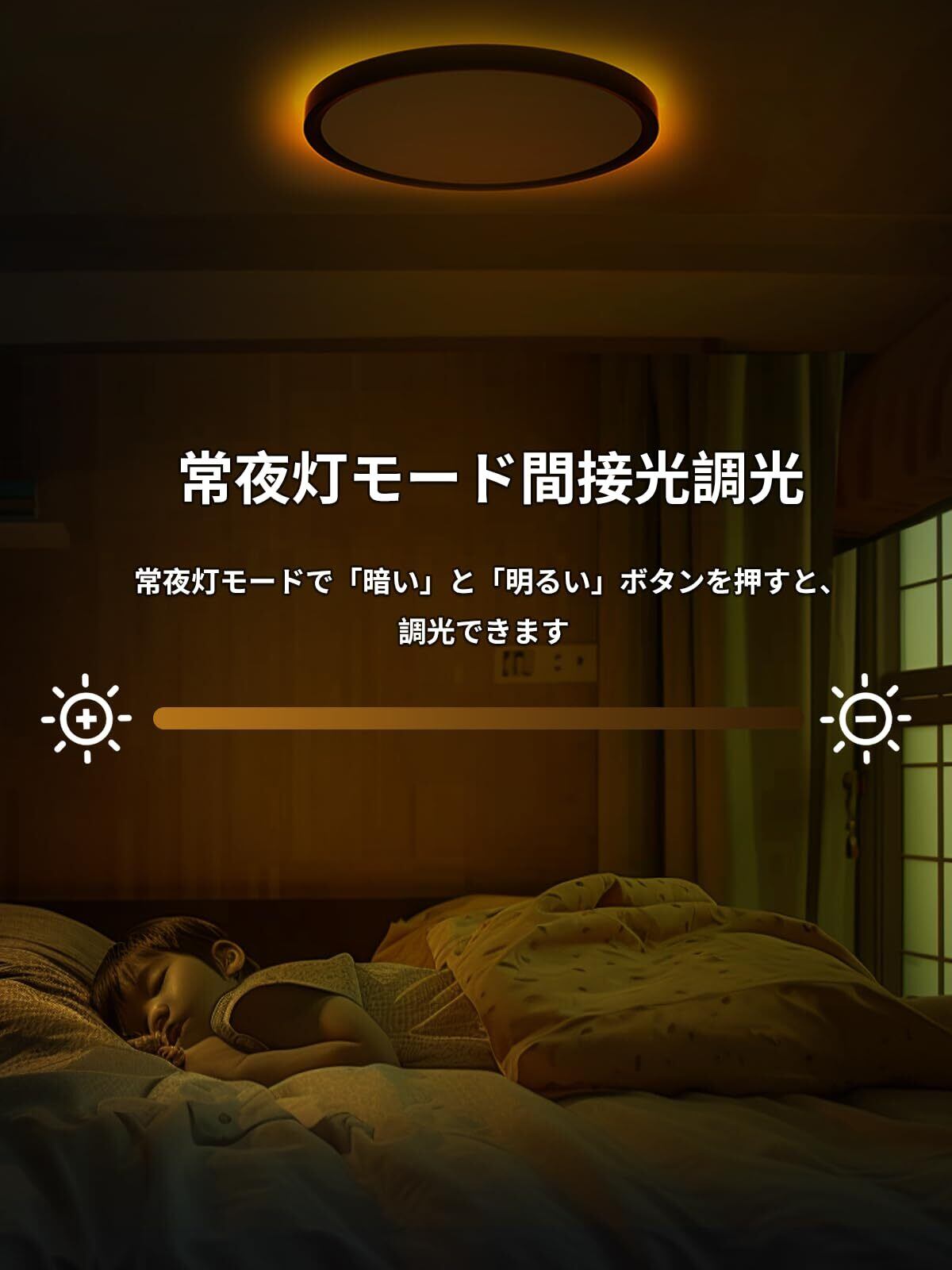 【メモリ機能・消灯タイマー】○スマートな記憶機能:他社のバカ記憶機能は常夜灯によって前の設定がリセットされる方が多く、当天井照明器具は常夜灯を使っても、次回点灯時にきちんと常夜灯前の設定を再現しますので、常夜灯のせいで毎日シーリングライトを設定する手間がなくなります!○自動消灯:設定して15/30/60分後自動的に消灯するため、消し忘れの心配は不要です。