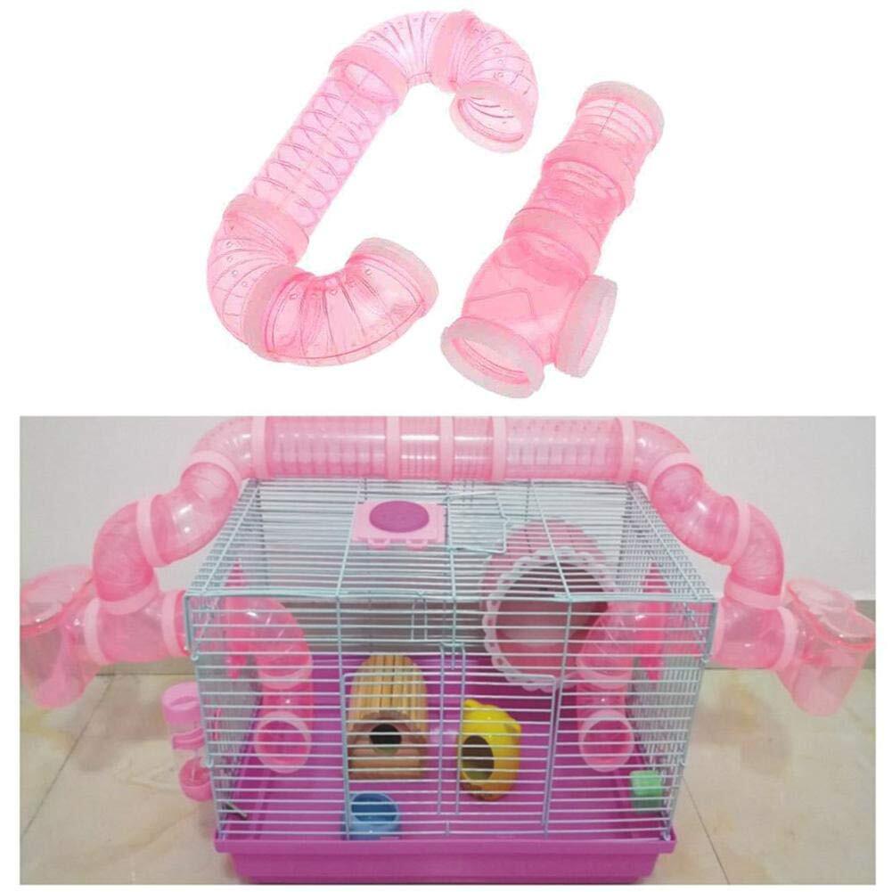 POTATO ハムスター ケージ トンネル DIYパイプン接続外部トンネル パイプチューブ 自由呼吸 換気 ハムスター遊び場セットマウス小動物ペット DIYストレス解消 (ピンク)