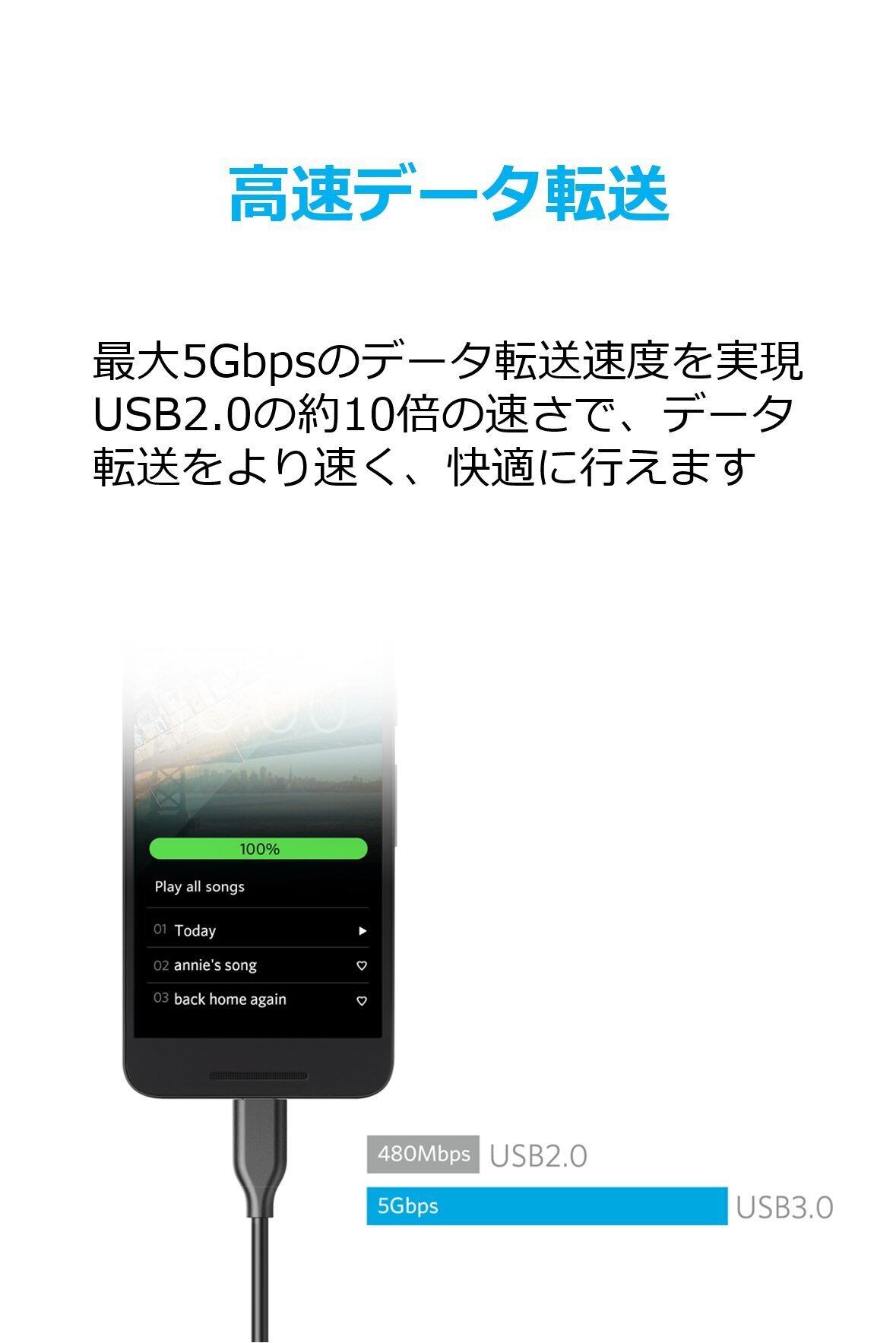 高速充電&同期:USB-Cポートからフルスピードでスマートフォンやタブレットに充電可能。HD映画を5Gbpsのハイスピードで転送できます(※Nexus 5X / 6Pへも充電は可能ですが、急速充電には対応しておりません)。