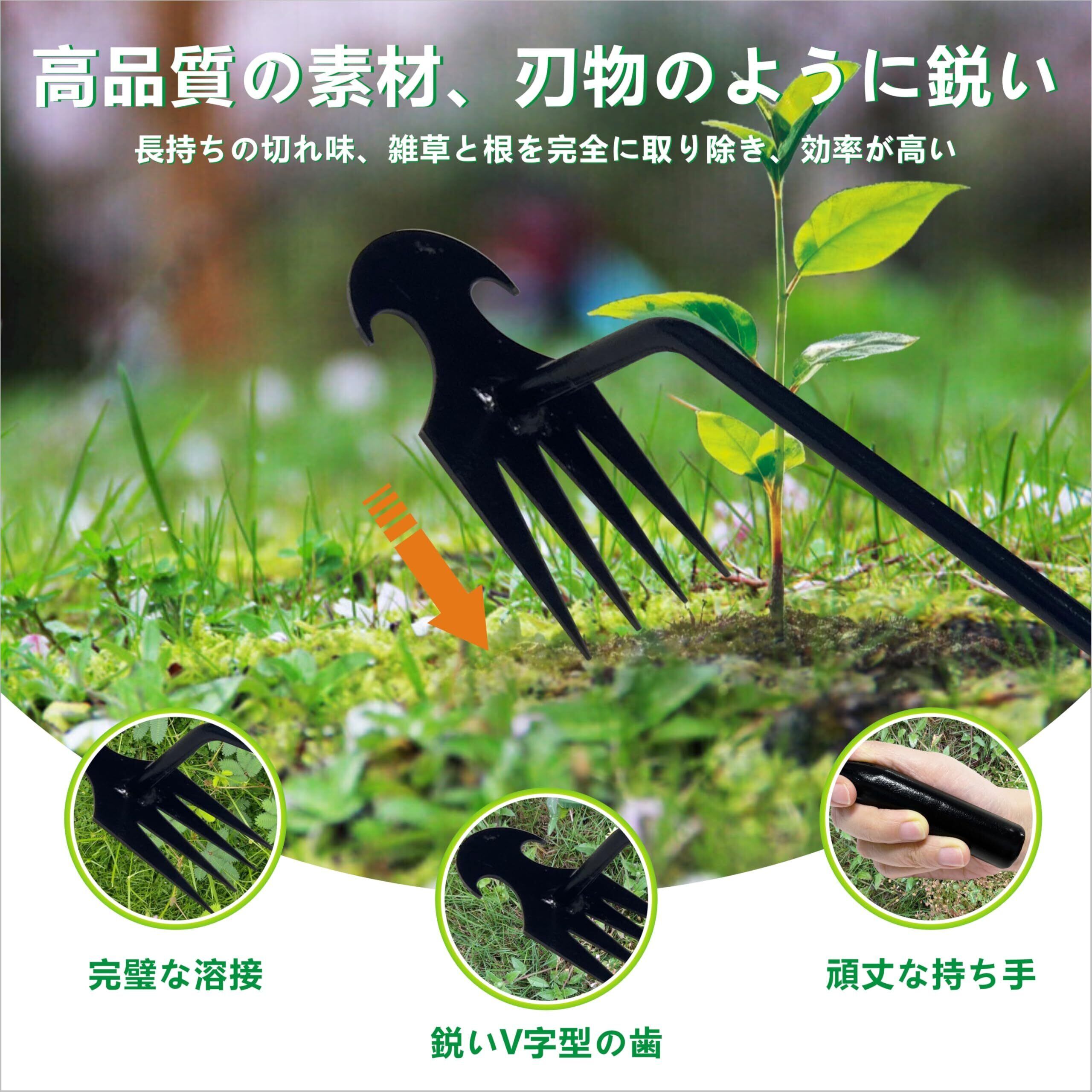 【頑丈な素材】この草取り道具は高品質のマンガン鋼で作られており、精密鍛造と研磨表面が施されています。硬度が高く、耐摩耗性、耐衝撃性に優れています。土や草にくっつかず簡単に雑草を取り除くことができます。