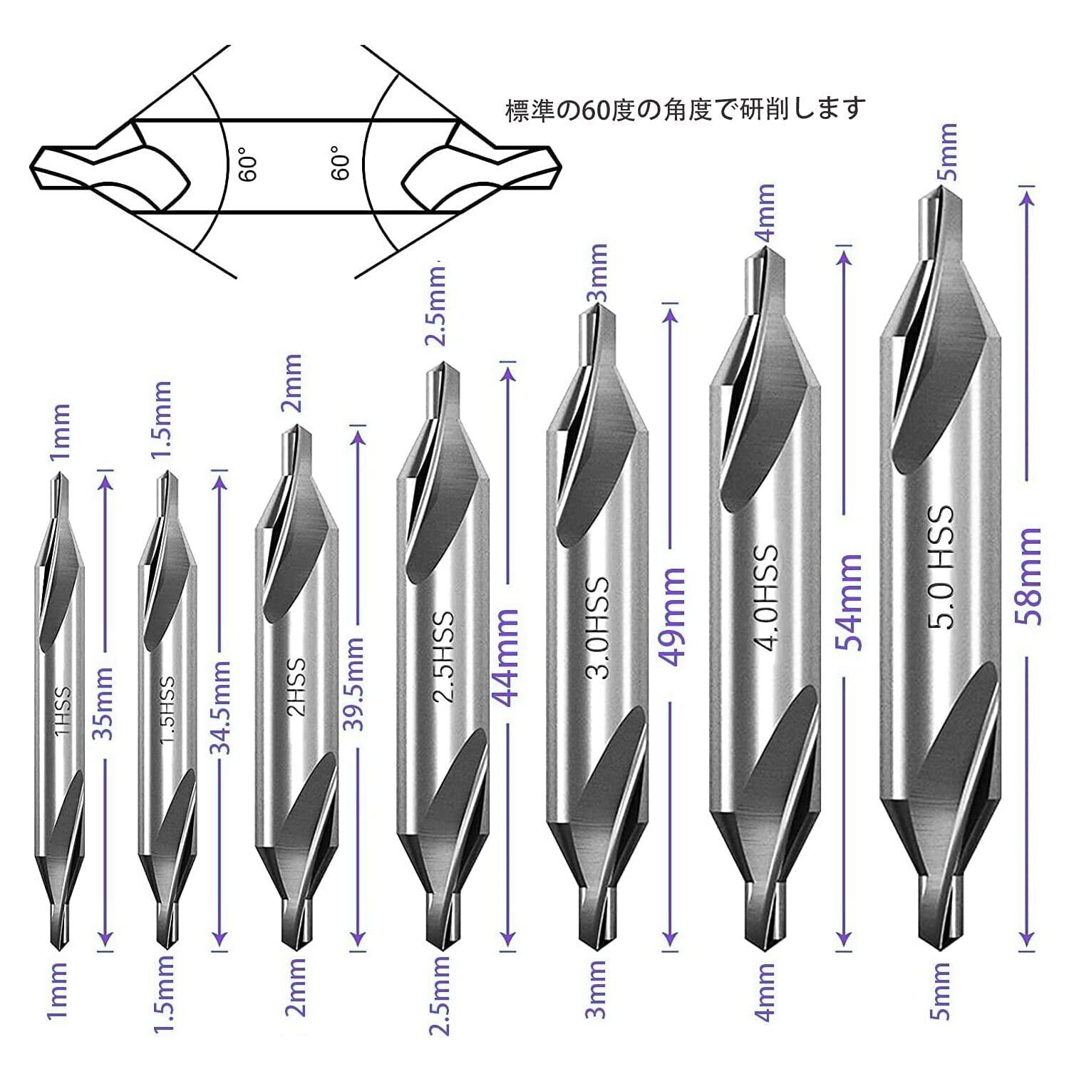 KIMLONTONセンタードリル 60度の角度 1mm 1.5mm 2mm 2.5mm 3mm 4mm 5mm 高速鉄鋼カウンターシンクビット7本セット 面取り ネジ穴 ツール センタードリルビット 金属加工/旋盤/木工に適応