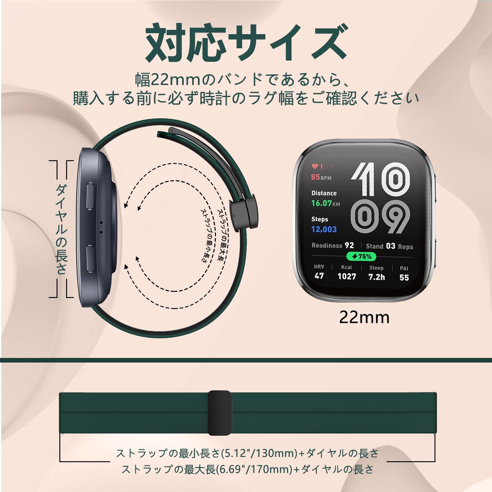 【対応機種】Amazfit Bip 6 / Amazfit Balance / Amazfit Bip 5 / Amazfit Bip 5 Unity / Amazfit Cheetah / Amazfit Cheetah Pro /Amazfit GTR 4 / Amazfit GTR 3 Pro / Amazfit GTR 3 / Amazfit GTR 2 eSIM / Amazfit GTR 2e / Amazfit GTR 47mm / Amazfit Pace / Amazfit Stratos 3 / Amazfit Stratos 2 / Amazfit Stratos 2s / Amazfit Stratos / Amazfit Nexo に対応します。【パッケージ内容】交換バンド*1 (注文する前に、お客様のスマートウォッチの機種を確認してから購入お願いします、説明はより多くの互換性のあるモデルを示します)