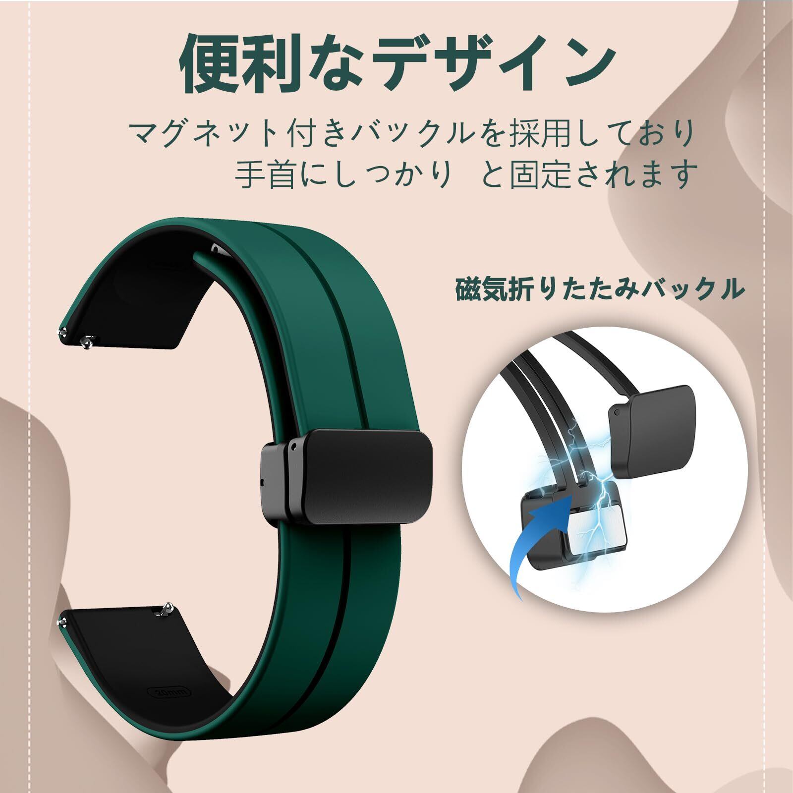 [ReHowy] バンド Amazfit Bip 6/Bip 5/Balance 対応 交換バンド シリコン製 弾力性 磁気バックル付き 22mm 交換ベルト コンパチブル Amazfit Cheetah/Cheetah Pro/GTR 4/GTR 3 Pro 替えベルト グリーン/ブラック