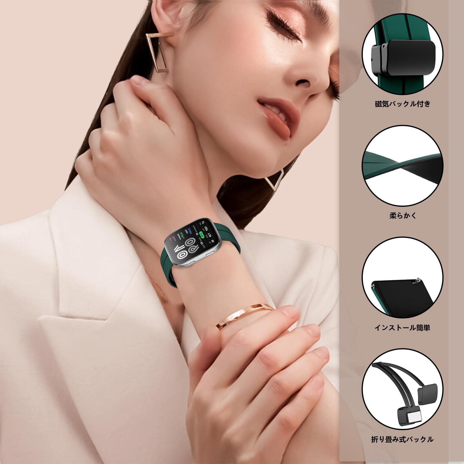 【インストール簡単】マグネット付きバックルを採用しており、簡単に装着・着脱ができます。履きやすい、工具を使わずに締めて締めるだけで、手首にしっかりと固定されます、男性にも女性にも着用できます