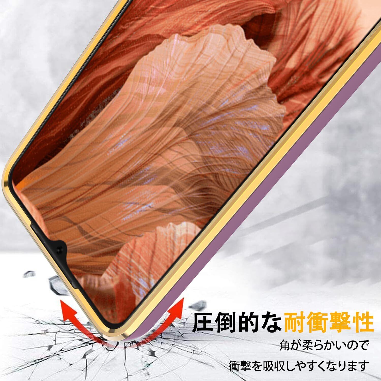 Galaxy S21 用ケース 薄型 TPU クリア 耐衝撃ケース レンズ保護 ソフトケース 透明 メッキ加工 ワイヤレス充電 ギャラクシーS21 用カバー ラップホール付き 軽量 メッキ枠 パープル/ゴールド JP2-149