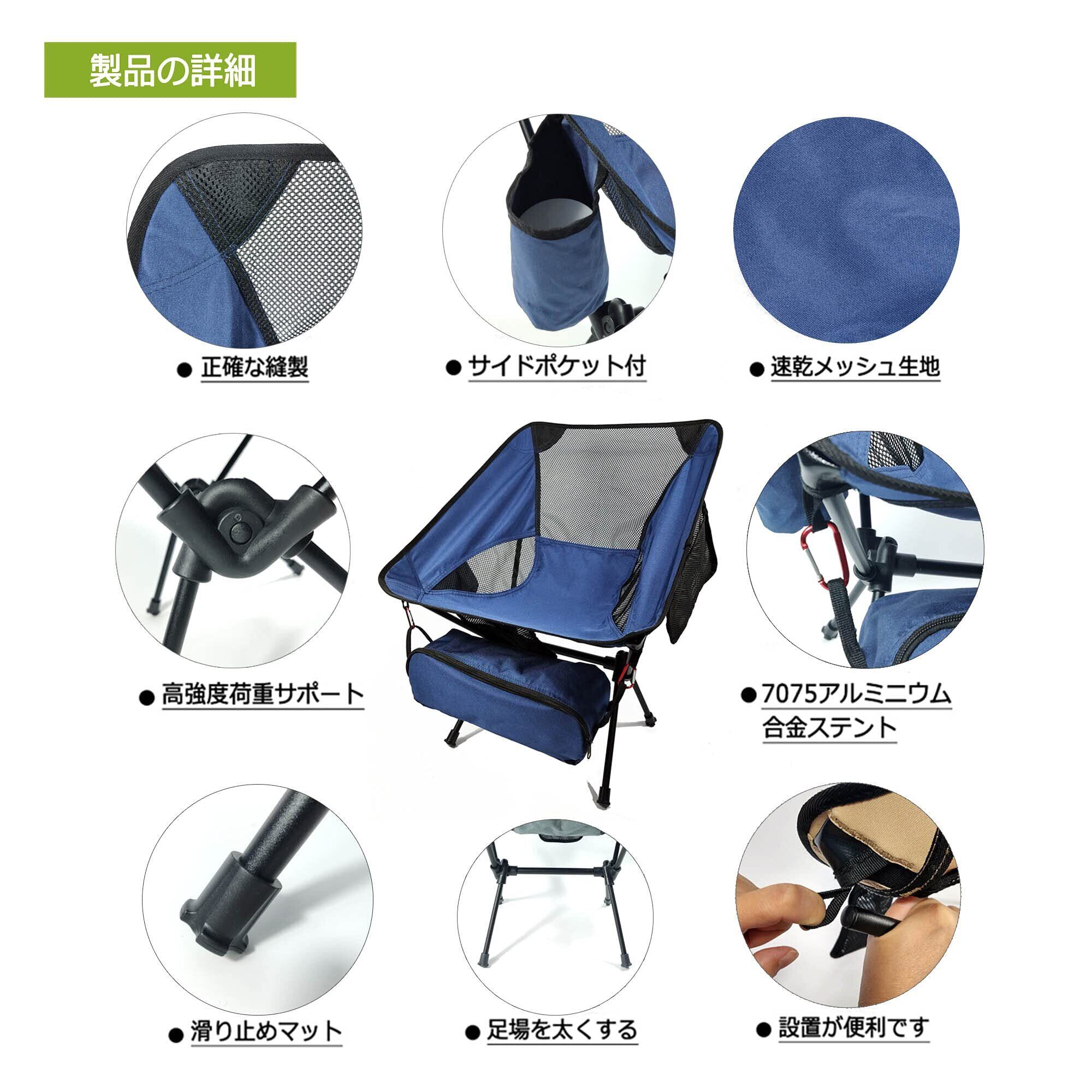 Dominant-X アウトドアチェア キャンプ椅子 超軽量 0.9KG 折りたたみ コンパクト より安定 ハイキング お釣り 登山 ドリンクホルダー付 収納バッグ付き 耐荷重150kg(ネイビー)