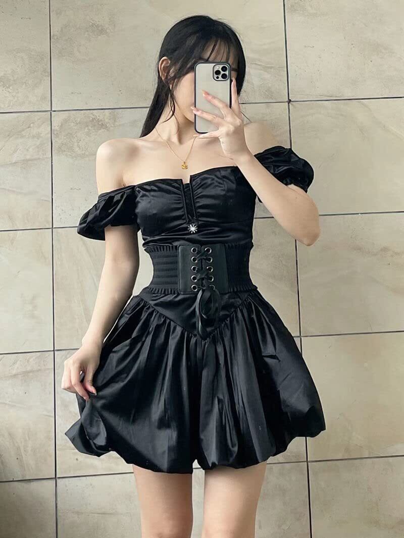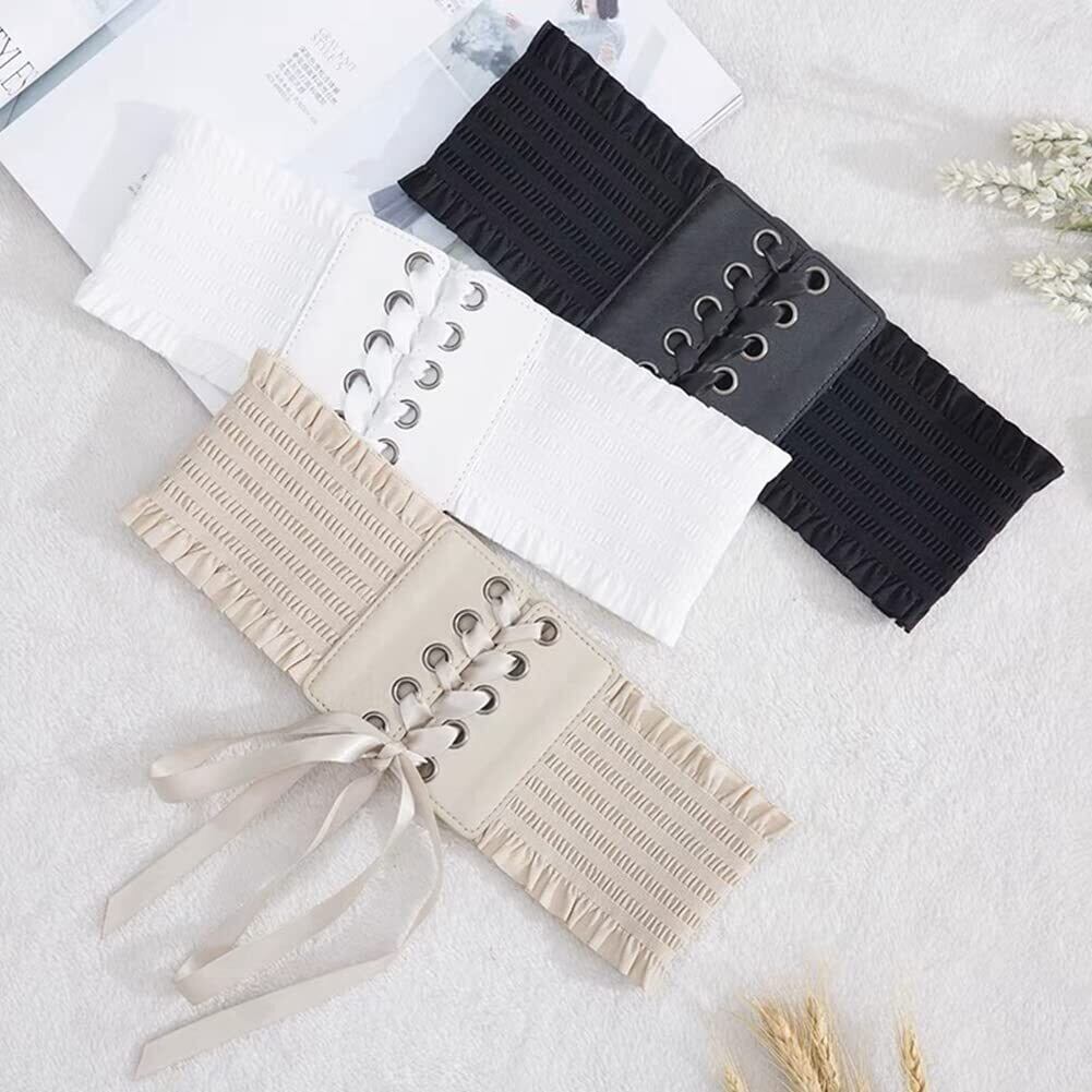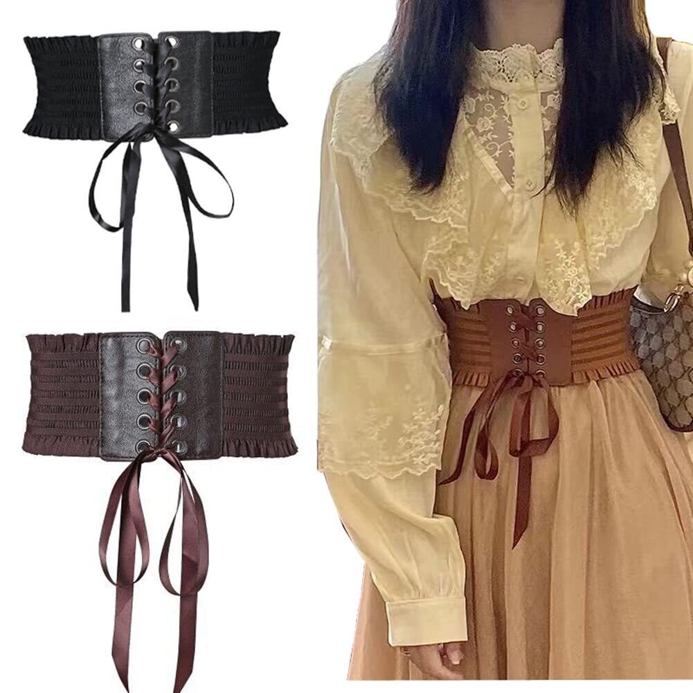 [InSomila] [インソミラ] サッシュベルト コルセット ベルト レディース レースアップ ゴム リボン ワイドベルト レザー フェイクレザー 太ベルト ゴムベルト 太 伸びる フリル付き スナップボタン付き カジュアル おしゃれ (ダークブラウン)