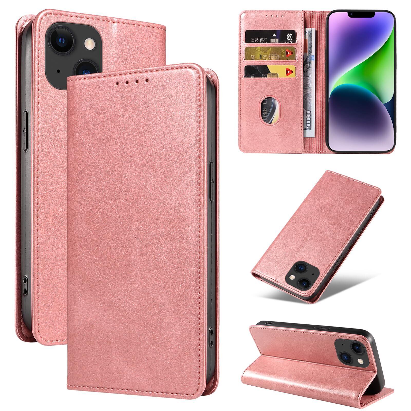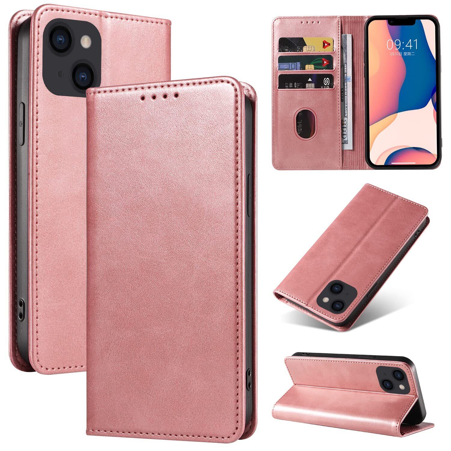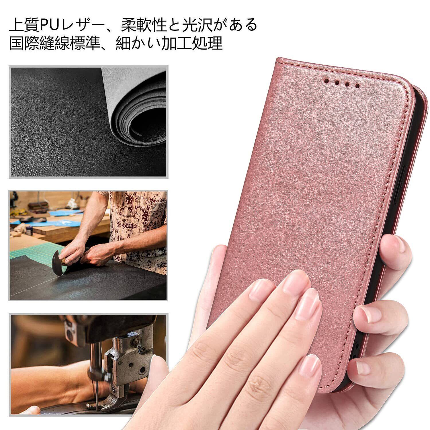 iPhone14 ケース イフォン14 スマホケース 手帳型 携帯カバー レザー 耐衝撃 軽量 着脱しやすい 放熱性 マグネット式 カード収納 スタンド機能 iphone ケース14 対応 360度保護 PinLiSheng (バラゴールド iPhone14)