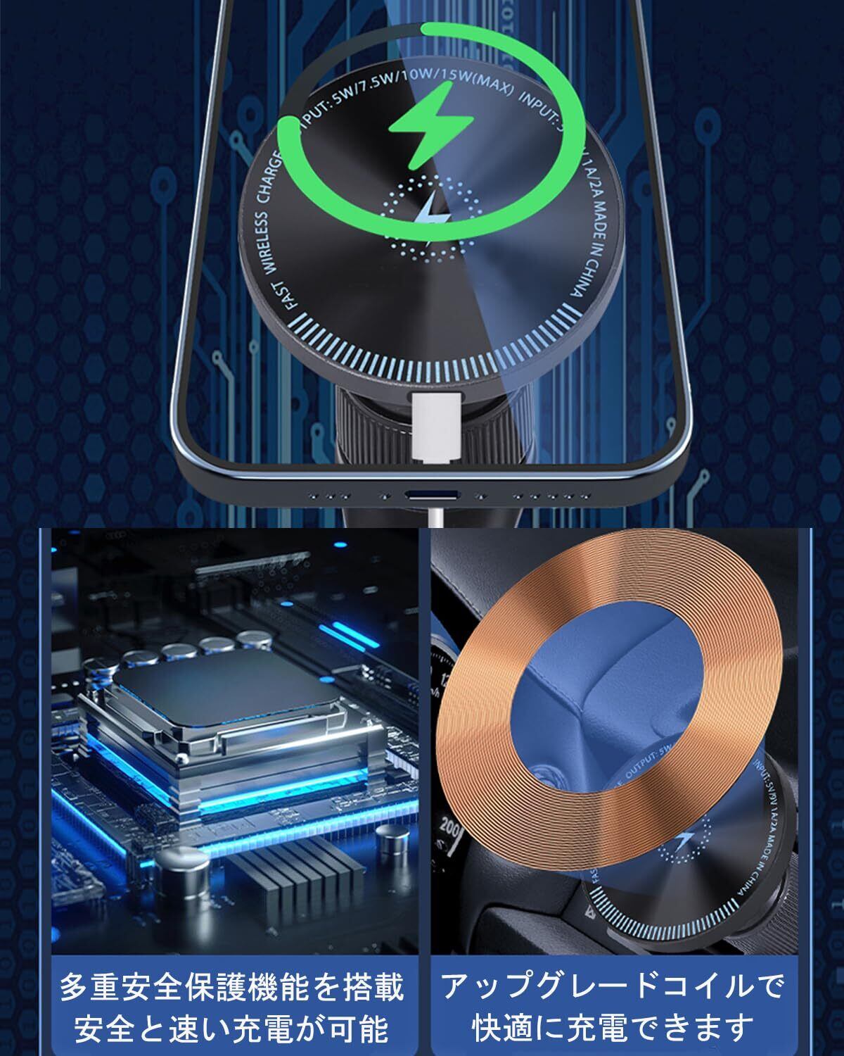 【安全運転を楽に】コンパクトなデザインがあまりスペースをとらず、360度回転可能なボールジョイントが横でも縦でもスマホを自由に操作できます。レヴォーグオーナーの視線を妨げず、安全な運転を実現できます。また、レヴォーグスマホスタンドは多重安全保護機能を搭載し、ショート防止、過熱防止、過電流、過電圧などの保護が全面的に含まれ、安全と速い充電が可能です。