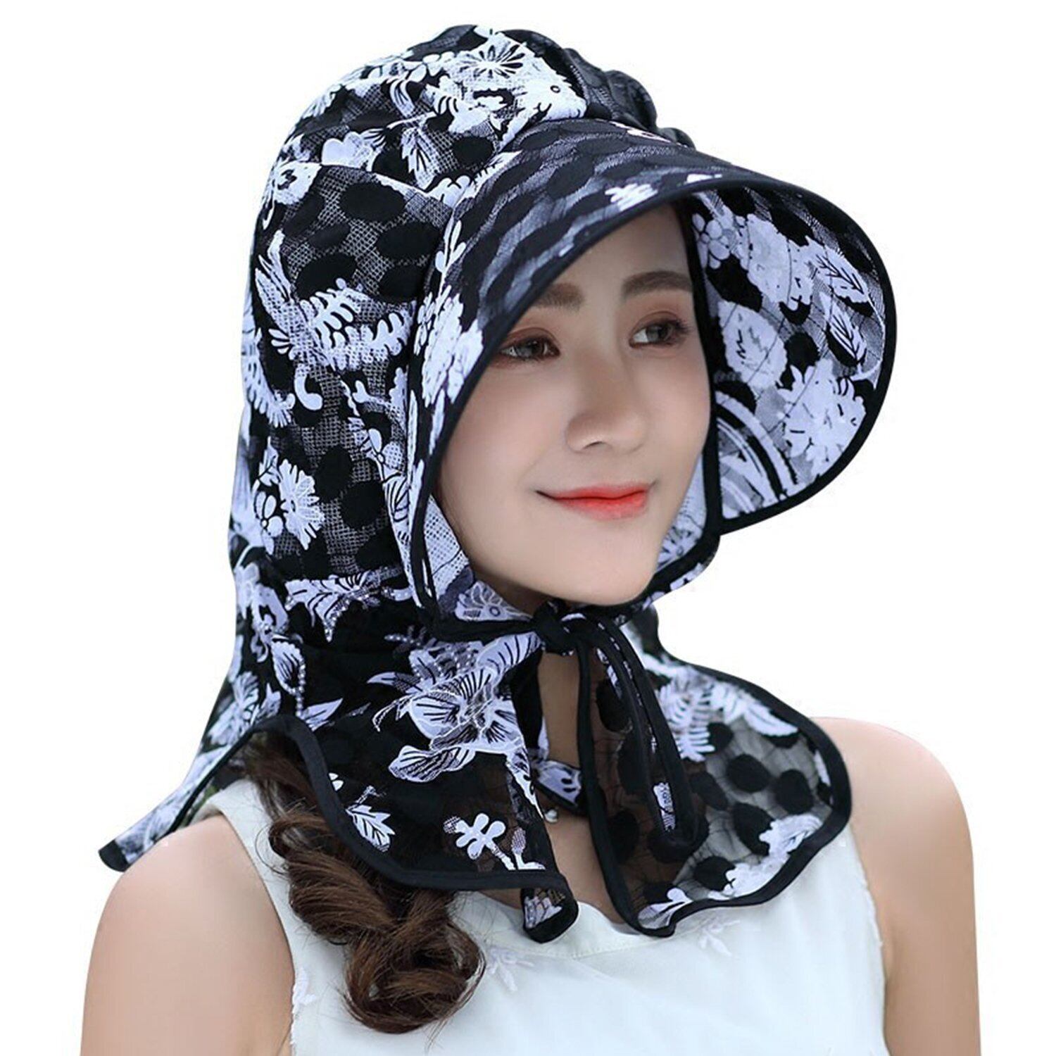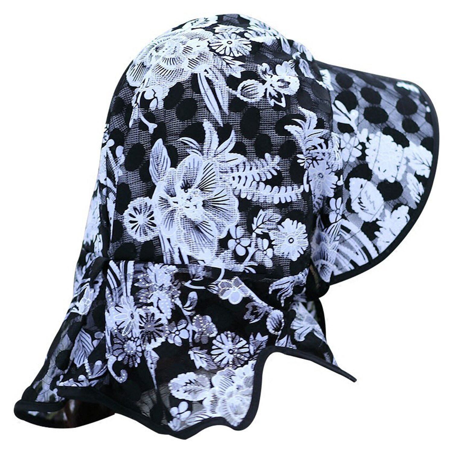 [RUIXIA] ガーデニング 帽子 uvカット ひよけ帽子 レディース 農作業用帽子 夏 ネックカバー 薄い 作業帽子 女性 レース 通気 速乾 日焼け対策 折り畳み 花柄 おしゃれ 農作業 アウトドア 作業 自転車 海 旅行 春夏 ブラック