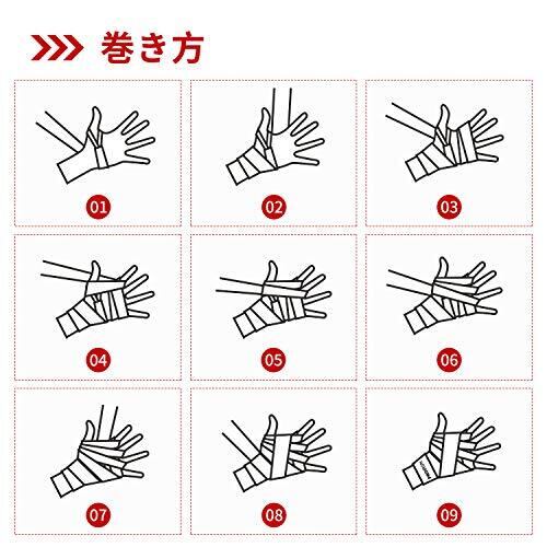 【バンテージ ボクシング用 フィット感に抜群】:簡易バンテージグローブ式とは違い、サイズが似合わないとか、指の付け根部分がほつれるとか、指の間の縫い目が擦れて水ぶくれができるとかという悩みはなく、包帯タイプのバンテージの巻きこつを把握すれば、自分の手をフィット感がぴったりサイズに調整でき、手首を保護、パンチ力のアップ