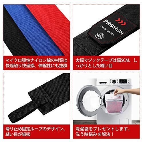 【高品質のボクシング用バンテージ 洗濯ネット付き】:微伸縮性・通気性のある柔らかいナイロンコットンは、快適で手首に保護を提供。ボクシングバンテージには巻き始め用にフィンガーループを付け、巻き終わりの固定はマジックテープ仕様なので、一人でも装着が簡単です。さらに、マジックテープは伸縮性のある素材を使用しているため、巻きやすい