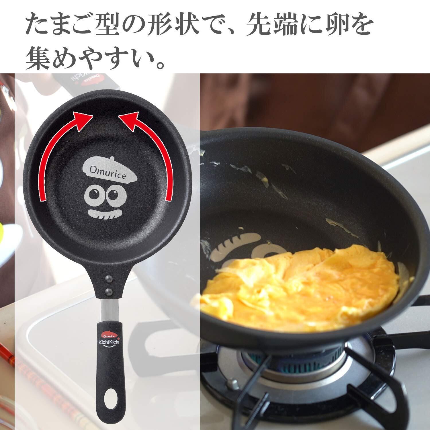 アーネスト フライパン 【老舗洋食店キチキチ監修】 オムレツが作りやすい (先端が深く長い形状/卵型) レシピ付き (ふわとろオムレツ用フライパン オムちゃん) 大手飲食店愛用ブランド ブラック A-77340